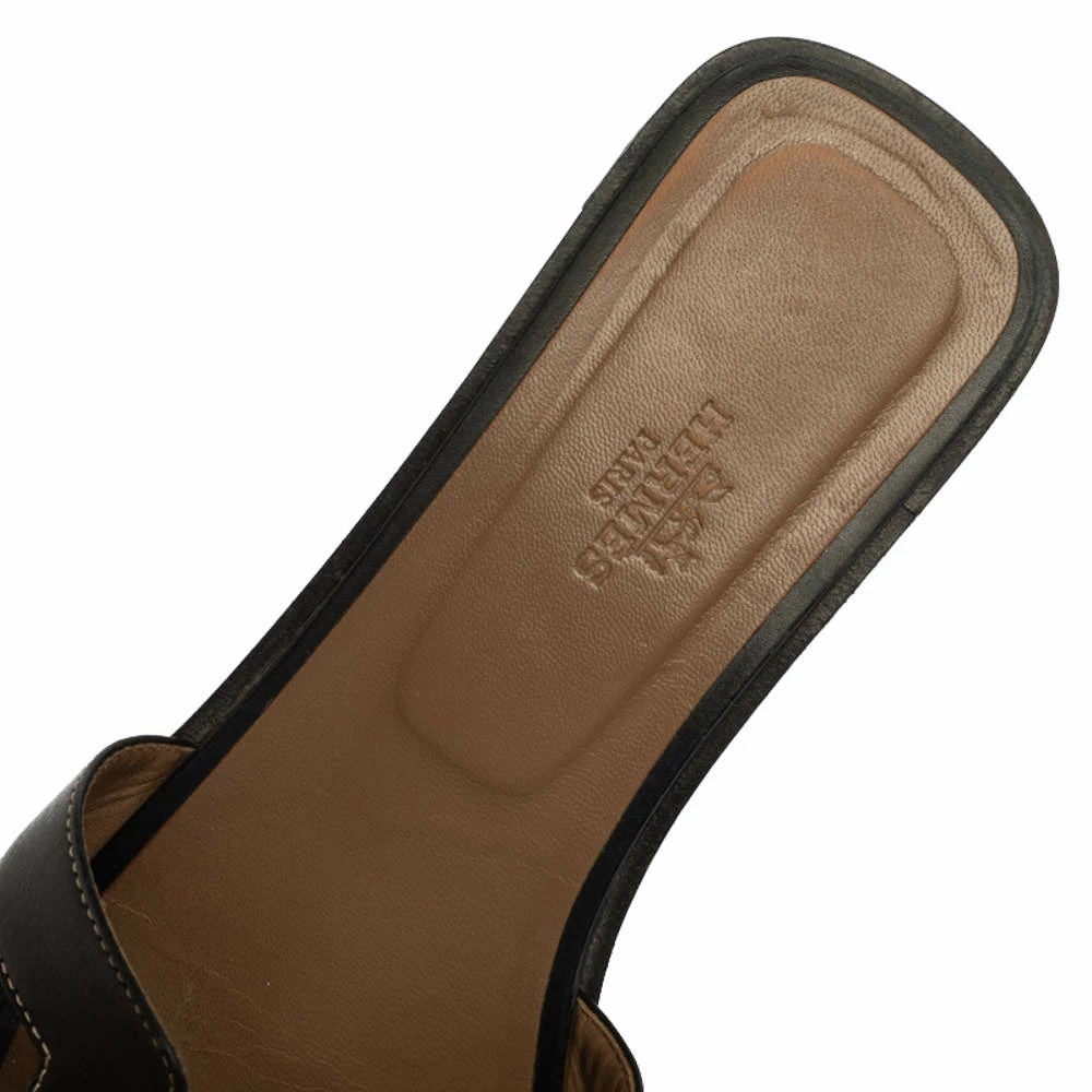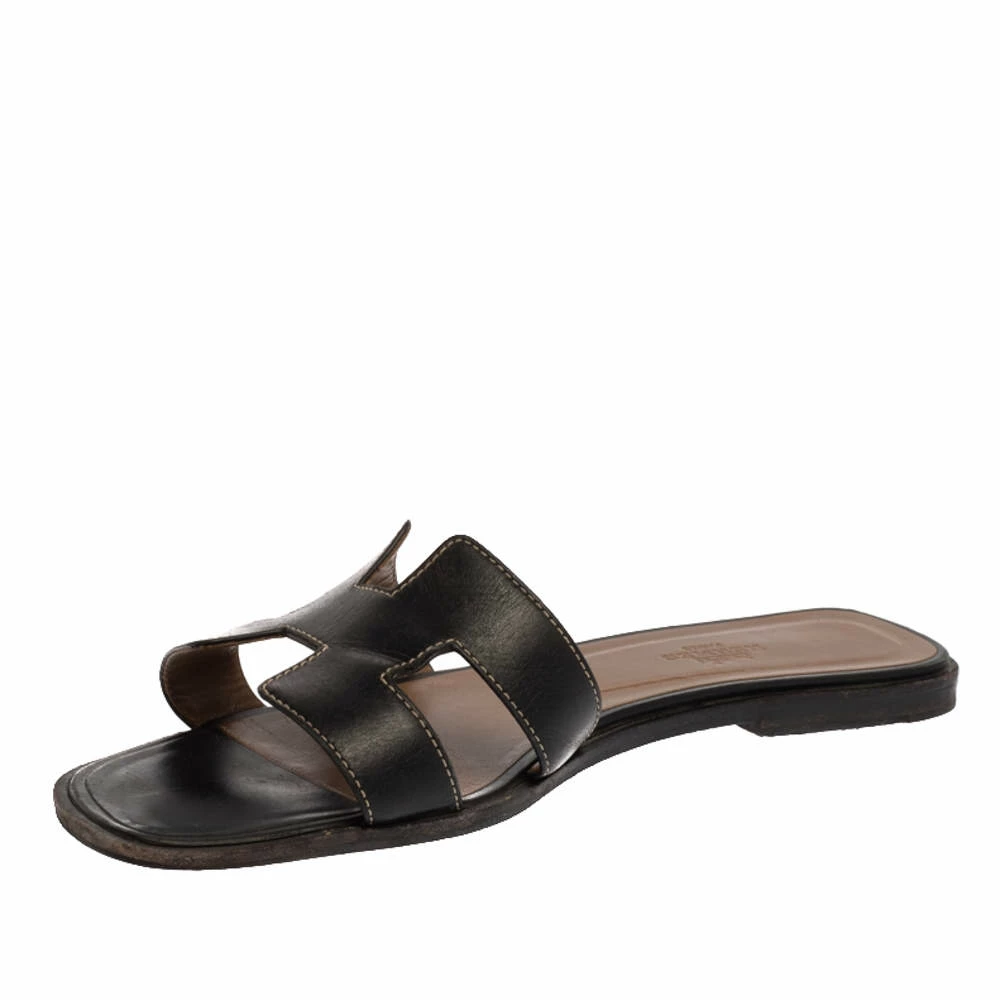 Put your best foot forward this season in these pretty Hermes sandals. These black Oran sandals have been crafted from leather in Italy and they feature the iconic H on the vamps as well as insoles meant to provide comfort at every step. These sandals are sure to attract admirers!