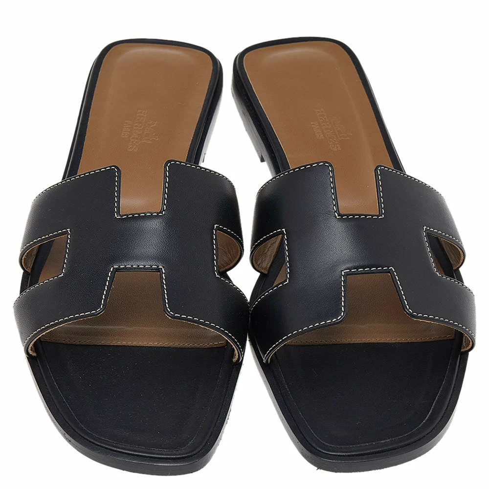 Put your best foot forward this season in these pretty Hermes sandals. These black Oran sandals have been crafted from leather in Italy and they feature the iconic H on the vamps as well as insoles meant to provide comfort at every step. These sandals are sure to attract admirers!