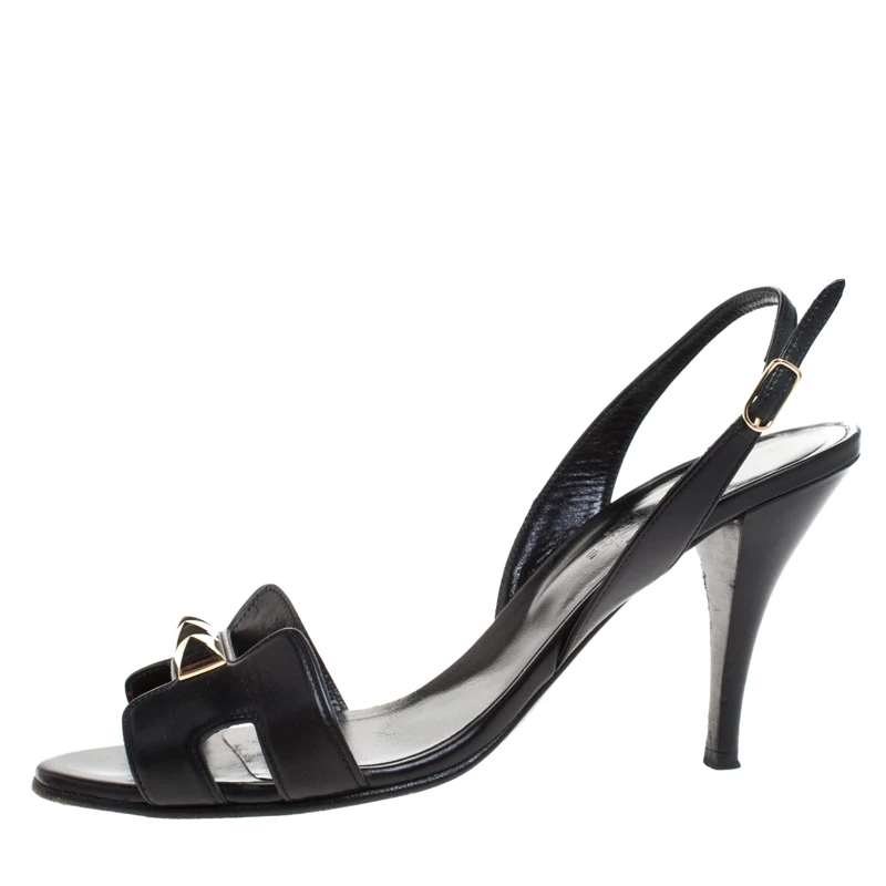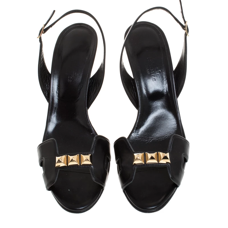 Put your best foot forward wherever you go in these pretty Hermes Premiere sandals. They’ve been crafted from quality leather in Italy and feature the iconic H on the vamp along with gold-tone studs. Buckle-held slingbacks and high heels beautifully complete the pair. These sandals are sure to attract admirers!