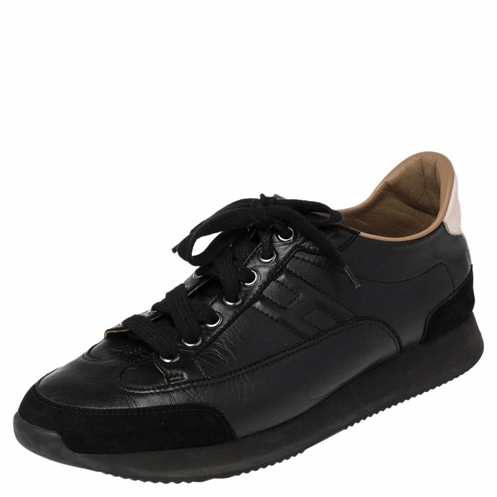 These black sneakers from Hermes are perfect for days when you wish for comfort and style! The Quick sneakers are crafted from leather and feature round toes, lace-ups on the vamps, and tough rubber soles. They are finished with H details.