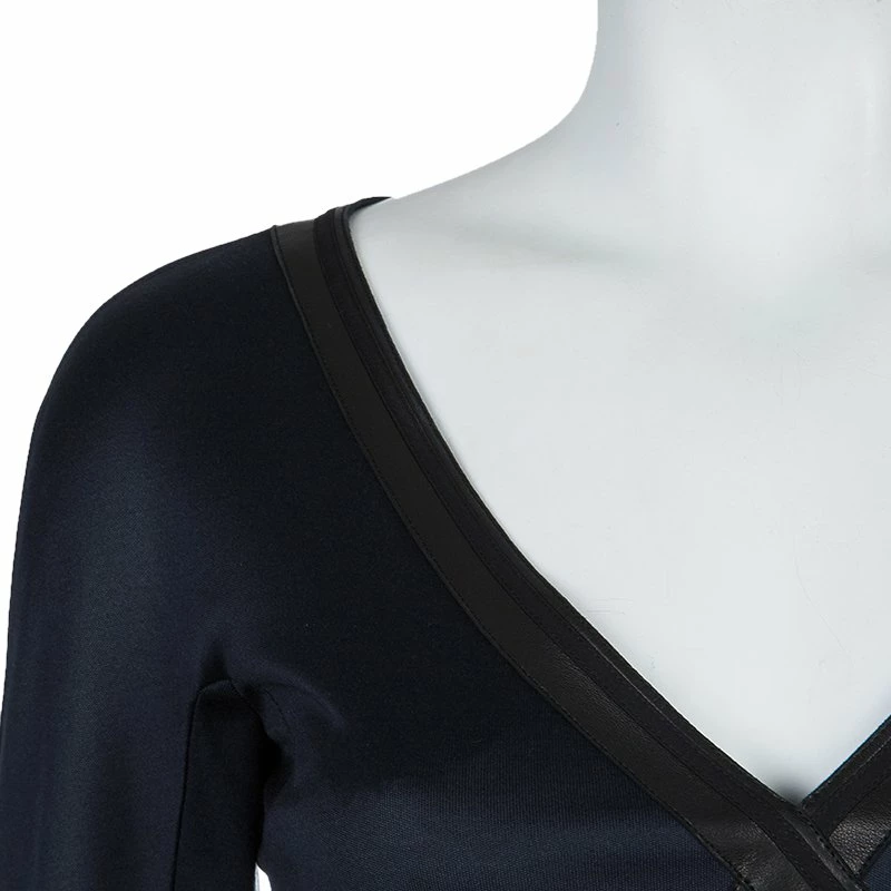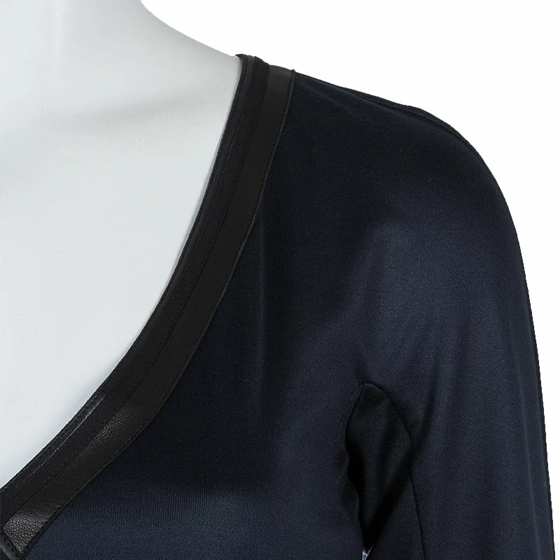 This gorgeous and eye catching dress tailored by Hermes will leave the crowd gazing leaving at you. Crafted from lambskin leather, it features a laudable V-shaped neckline accentuated with 3/4th sleeves and leather trimmed detailing.