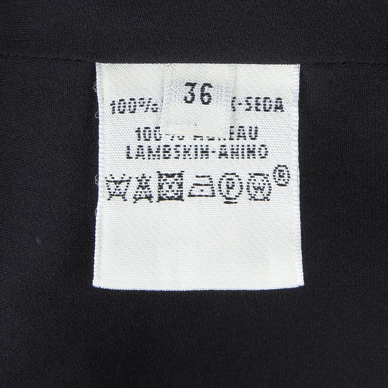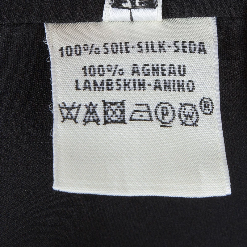 - Fabric: Shell : 100% Silk ; Trim : 100% Lambskin Leather