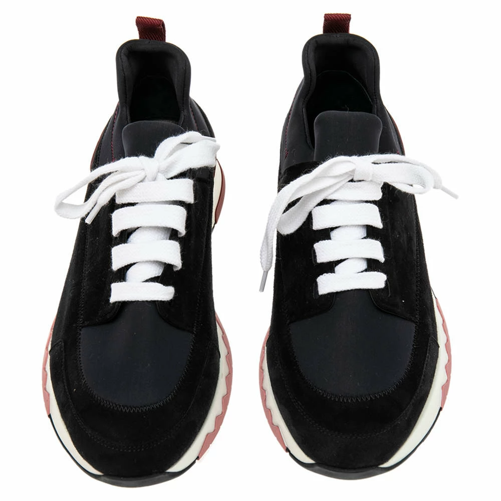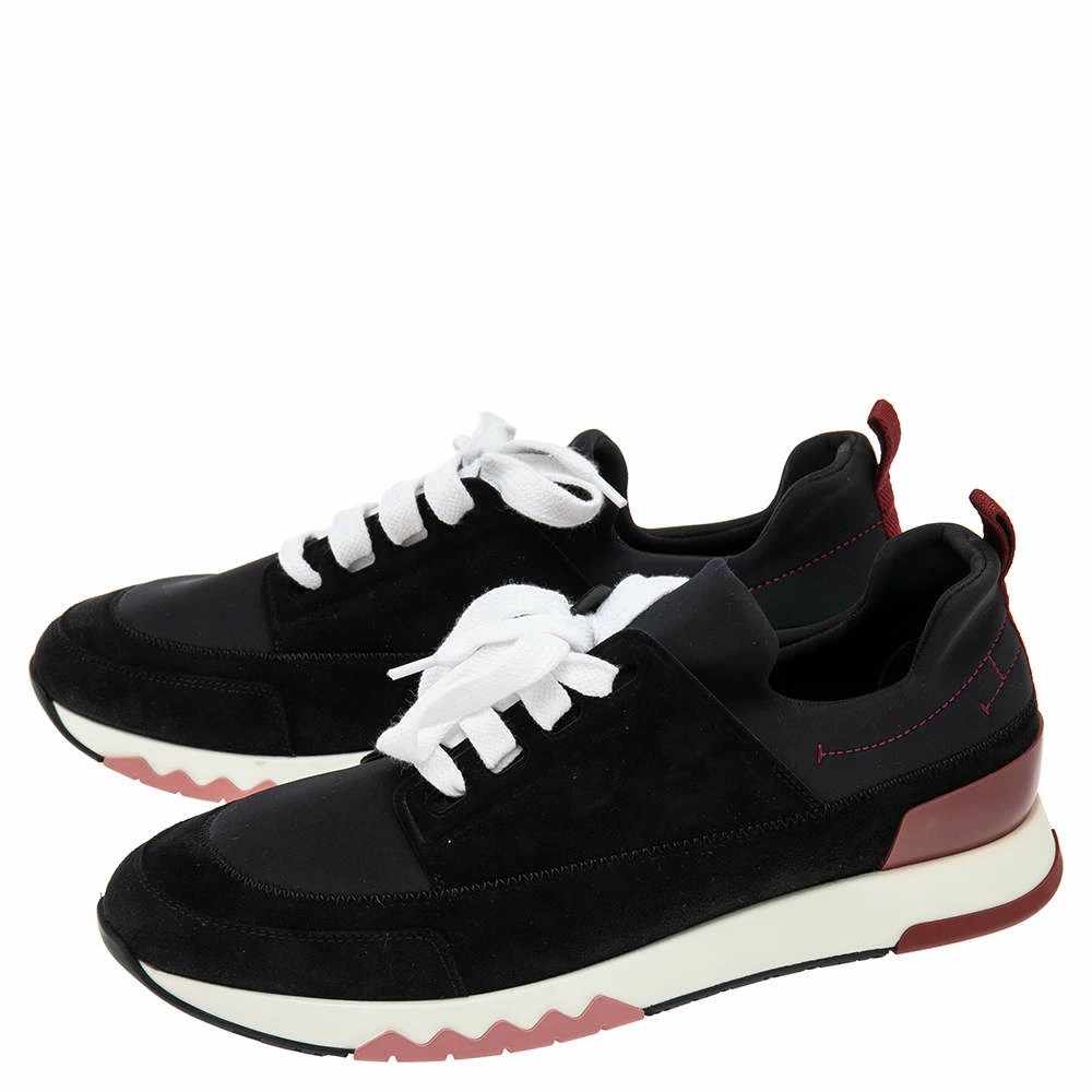 The distinct look of these Stadium sneakers from Hermes is created with nylon, finished off with suede trims, lace-ups, and finely-constructed soles. They are a fine pair to uplift or complement your off-duty adventures.