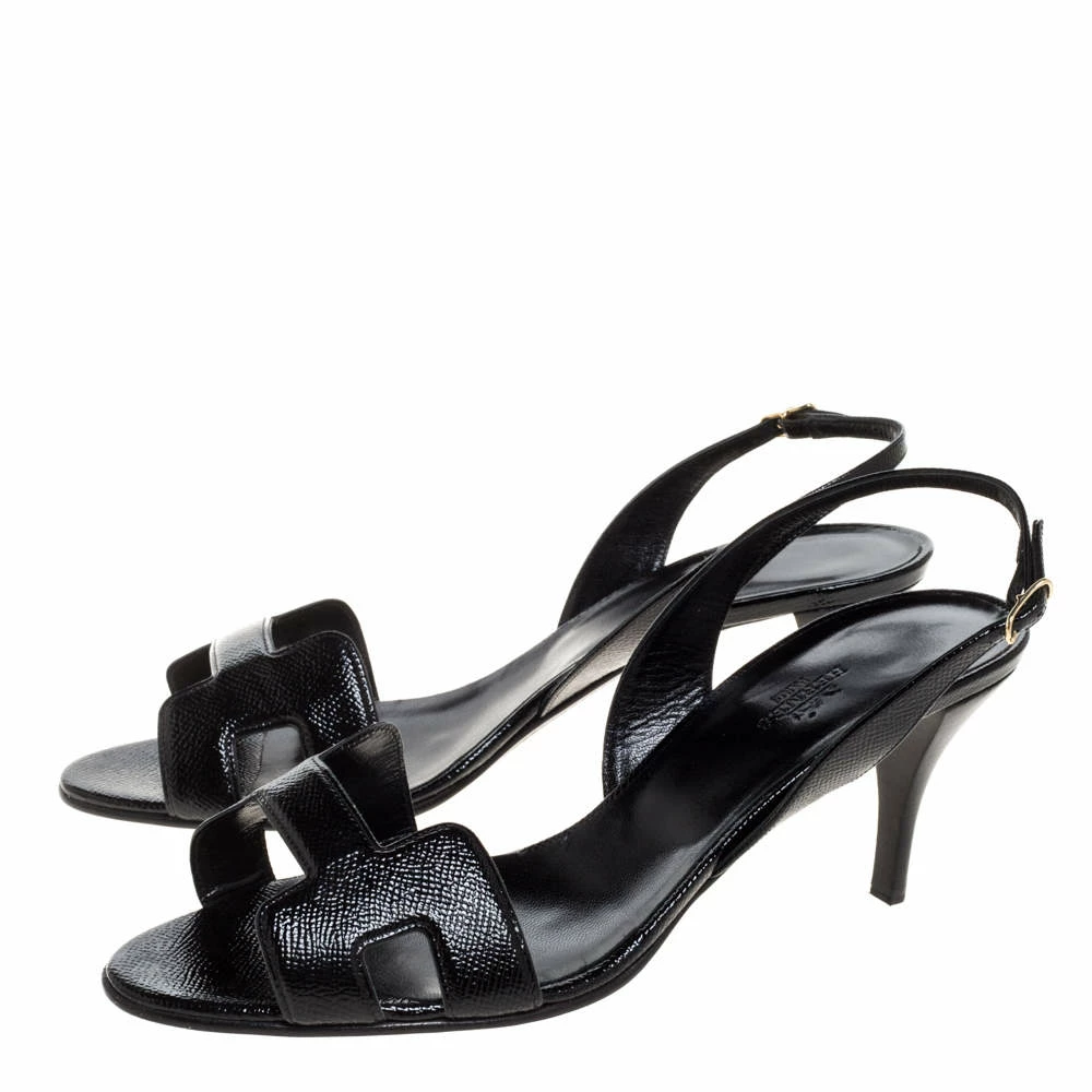 Put your best foot forward wherever you go in these pretty Hermes sandals. They’ve been crafted from patent leather in Italy and feature the iconic H on the vamp. Buckle-held slingbacks and 8 cm heels beautifully complete the pair. These sandals are sure to attract admirers!