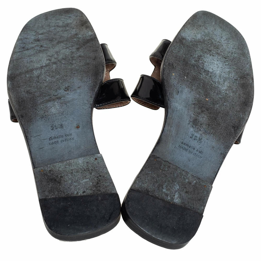 Put your best foot forward this season in these pretty Hermes sandals. These black Oran sandals have been crafted from patent leather in Italy and they feature the iconic H on the vamps as well as insoles meant to provide comfort at every step. These sandals are sure to attract admirers!