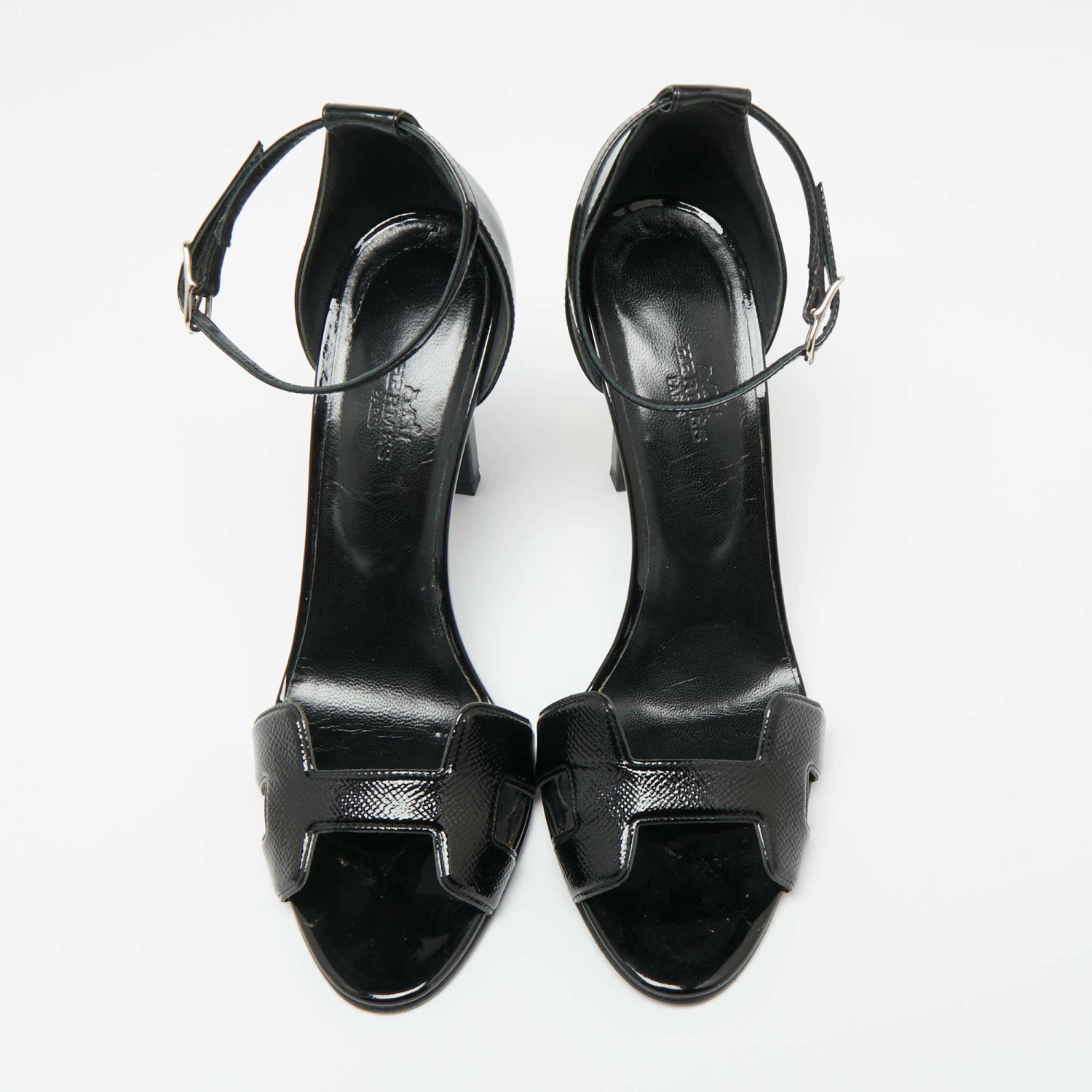 Put your best foot forward wherever you go in these pretty Hermès Premiere sandals. They’ve been crafted from patent leather into a sleek shape. Buckled ankle straps, upper H covering, closed counters, and 11 cm heels complete the pair.