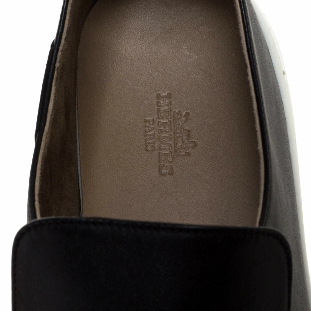 One’s wardrobe is incomplete without a good pair of sneakers and what better than these Hermes ones! These slip-on sneakers have been crafted from black leather and styled with round toes and perforations on the vamps. They are complete with durable rubber soles and will look great with casuals.