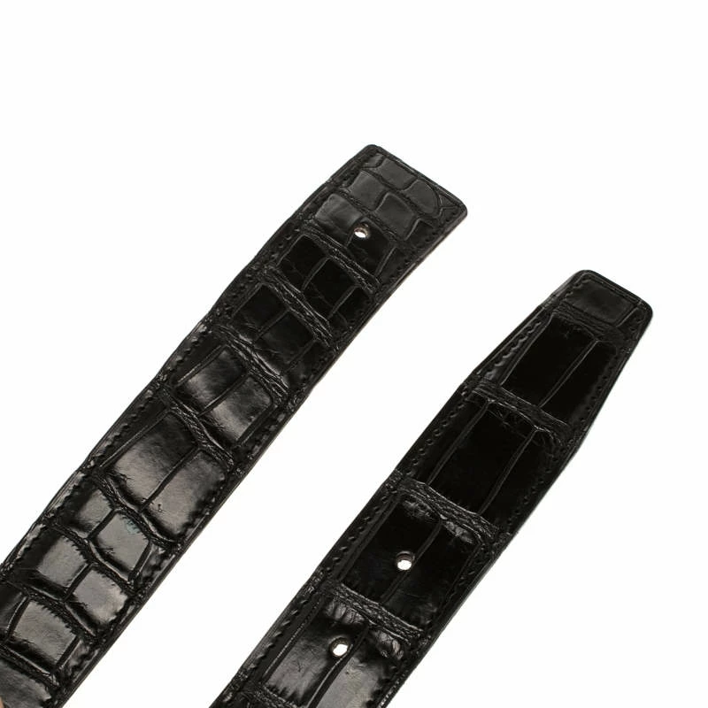Add a luxurious and distinct look to your everyday black belt with this stunning Hermes belt strap that can be made to look stylish or elegant as per your wish. Crafted in black porosus crocodile leather, this exotically designed belt will instantly stand out and wear with both your day time formals and night time party looks.