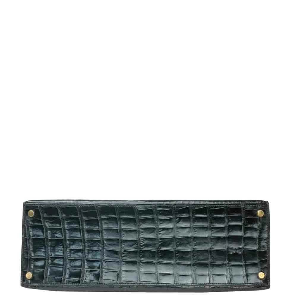 The Hermes Kelly is beautiful as it is carefully hand-stitched to perfection. This Kelly is crafted from crocodile leather and has gold-tone hardware. The bag comes with a turn-lock closure, single top rolled handle, and a padlock with its keys within a clochette. The leather-lined interior houses pockets and enough space to easily fit in all your daily necessities. Invest in this beauty today! Note: Available for UAE customers only