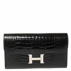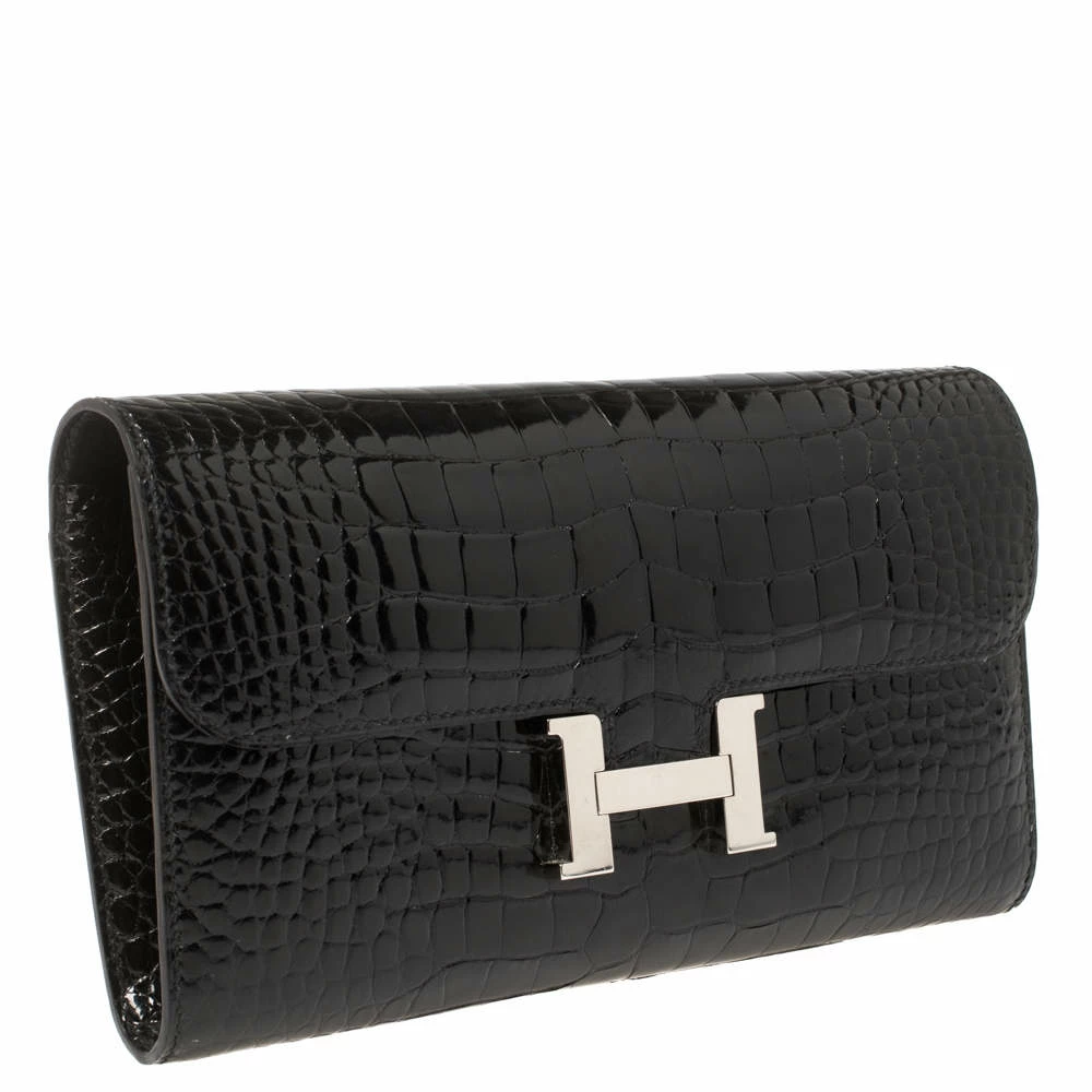 The Constance collection was created in 1969 and was named after the newborn daughter of Hermes’ designer, Catherine Chaillet. The creation is handcrafted from exotic alligator skin in a black hue and features the iconic H clasp made from palladium on the front flap. The wallet’s interior features multiple card slots, open compartments, and a zipper pocket. The sturdy silhouette is loved by fashionistas worldwide. Get this covetable piece for yourself today! (NOTE: AVAILABLE FOR UAE CUSTOMERS ONLY)