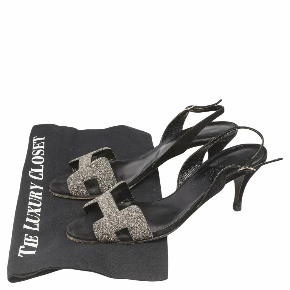 Effortlessly stylish and comfortable to wear for long hours, these Hermes Night slingback sandals will never fail to impress you. Crafted in suede, these sandals feature the glittered panels along with a buckled slingback strap and a comfortable heel that will take you from day to night with ease.