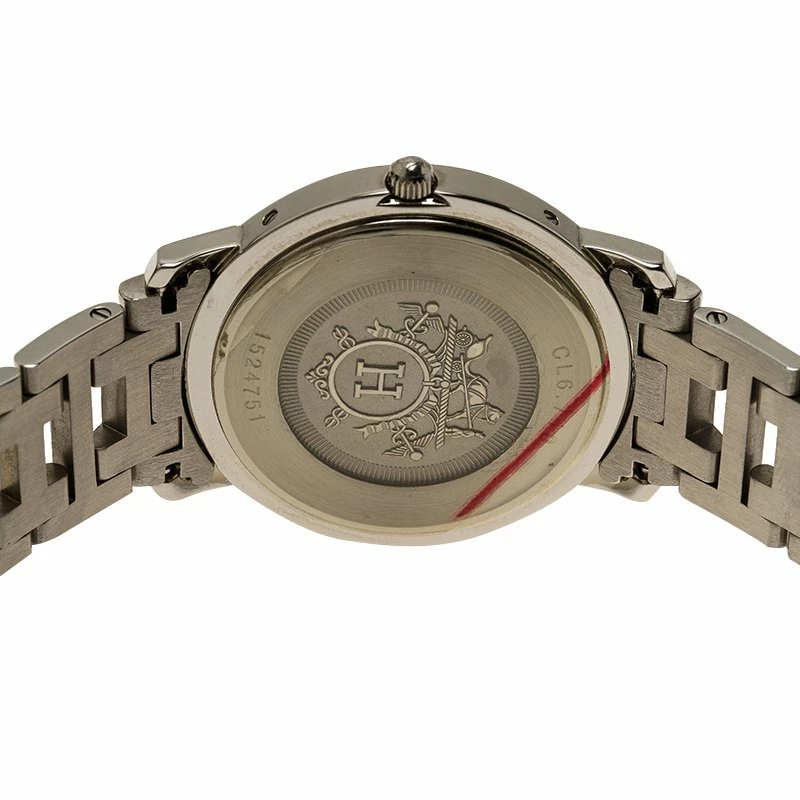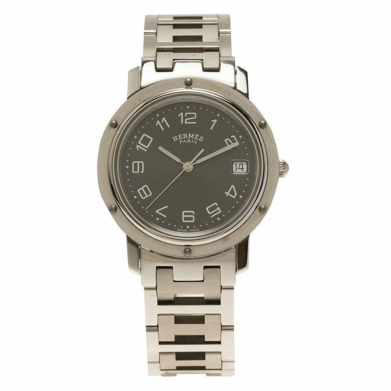Ravishing and stupendous, this timepiece by Hermes will offer you a prepossessing look. Made from stainless steel, it features a classic round bezel that counters an elegant black dial. This watch houses luminescent hands along with Arabic numerals and a date window at 3 o’clock. The impressive bracelet comes with a clasp closure and the 30M water resistant has a quartz movement.