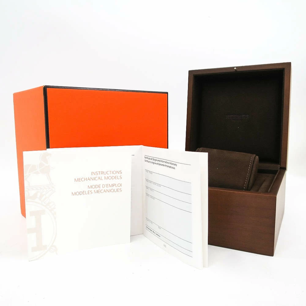 Redefine your suave style with this trendy and stylish Hermes Dressage wristwatch. The dashing black dial contrasts elegantly with the stainless steel case. The cool black leather strap adds to the charm of the piece. Versatile and easy to read, this watch is powered by automatic self-winding movement for durability.