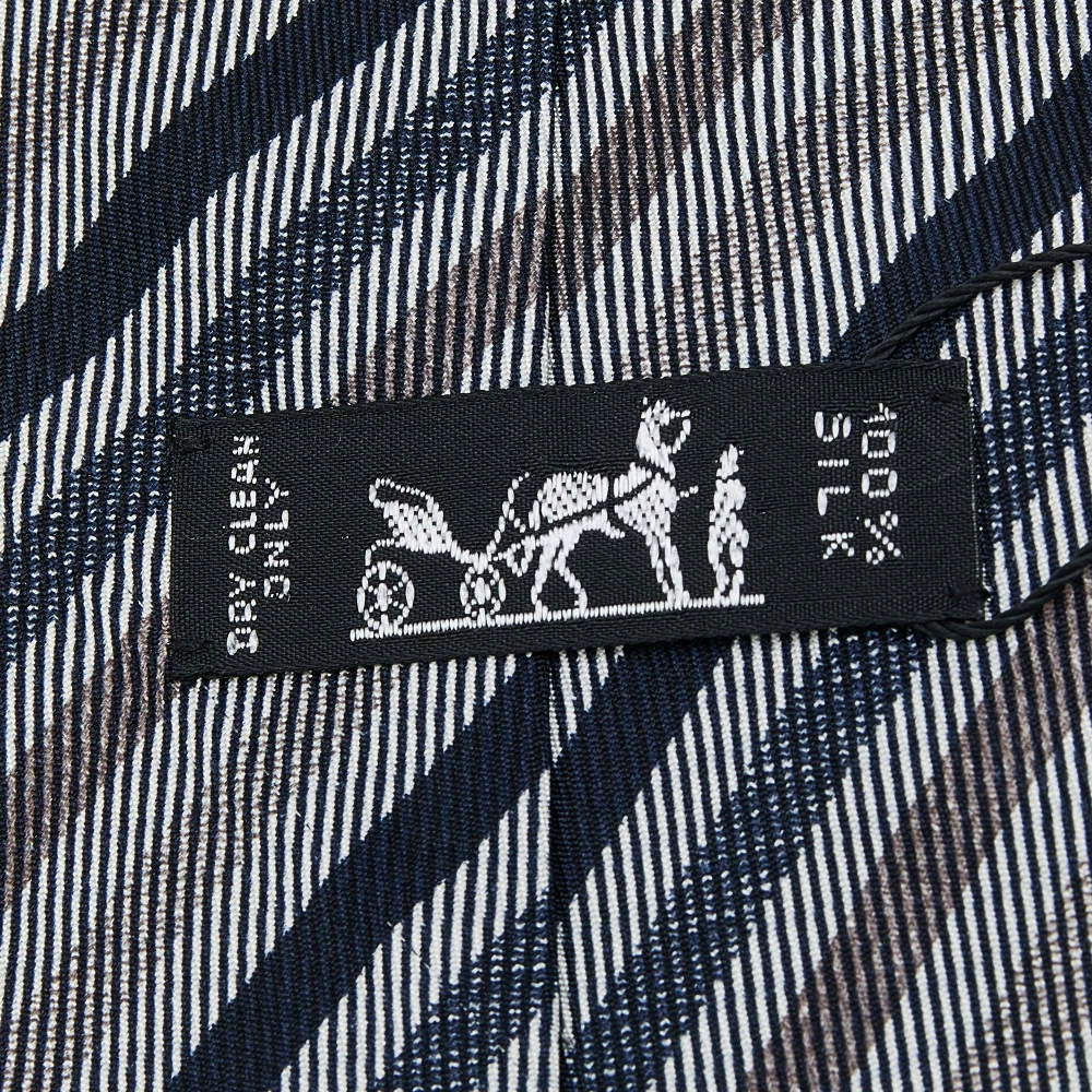 This Hermès tie is a perfect formal accessory that has a sharp and modern appeal. Made from luxurious materials, it features intricate patterns, and the brand label neatly stitched at the back. It is sure to add oodles of style to your blazers.