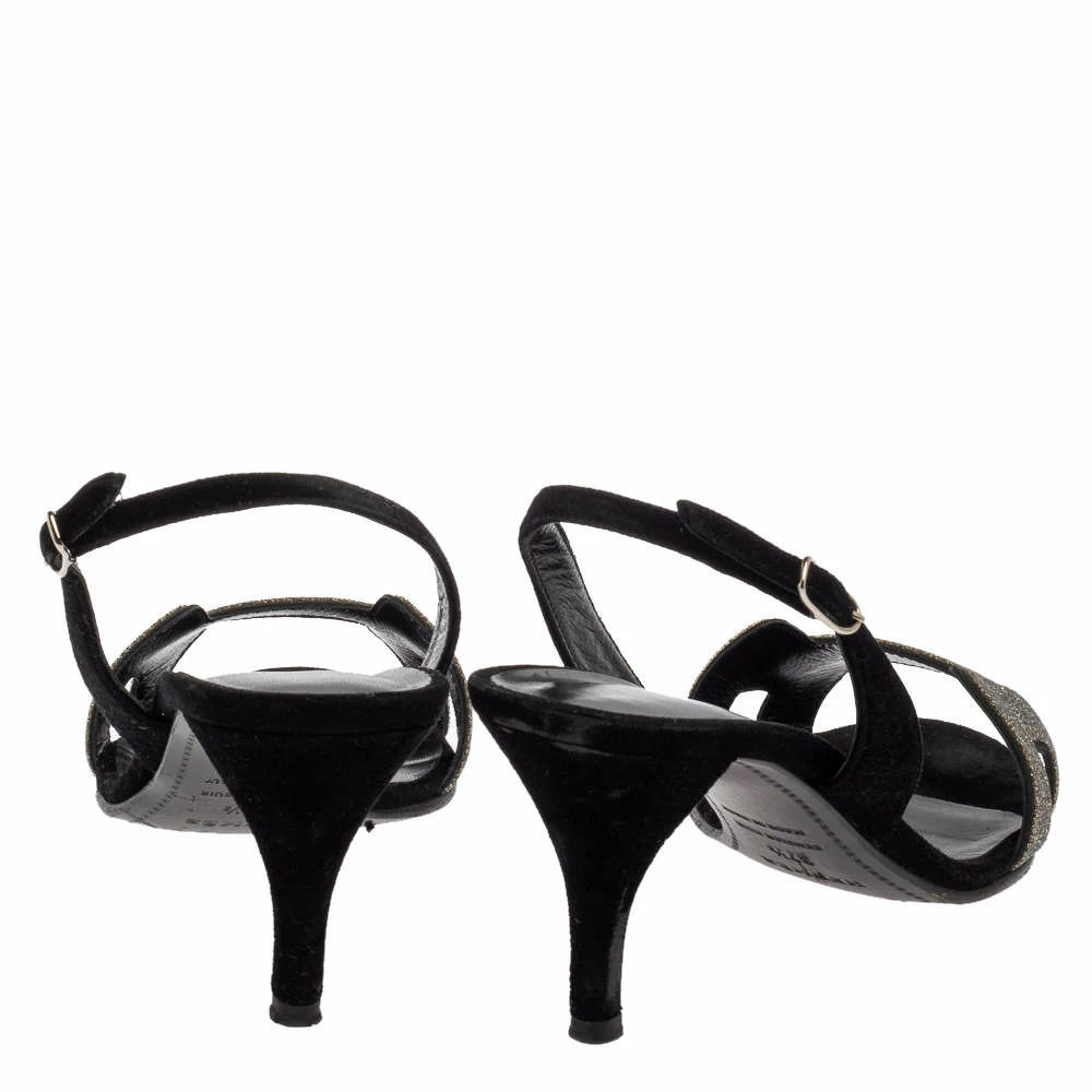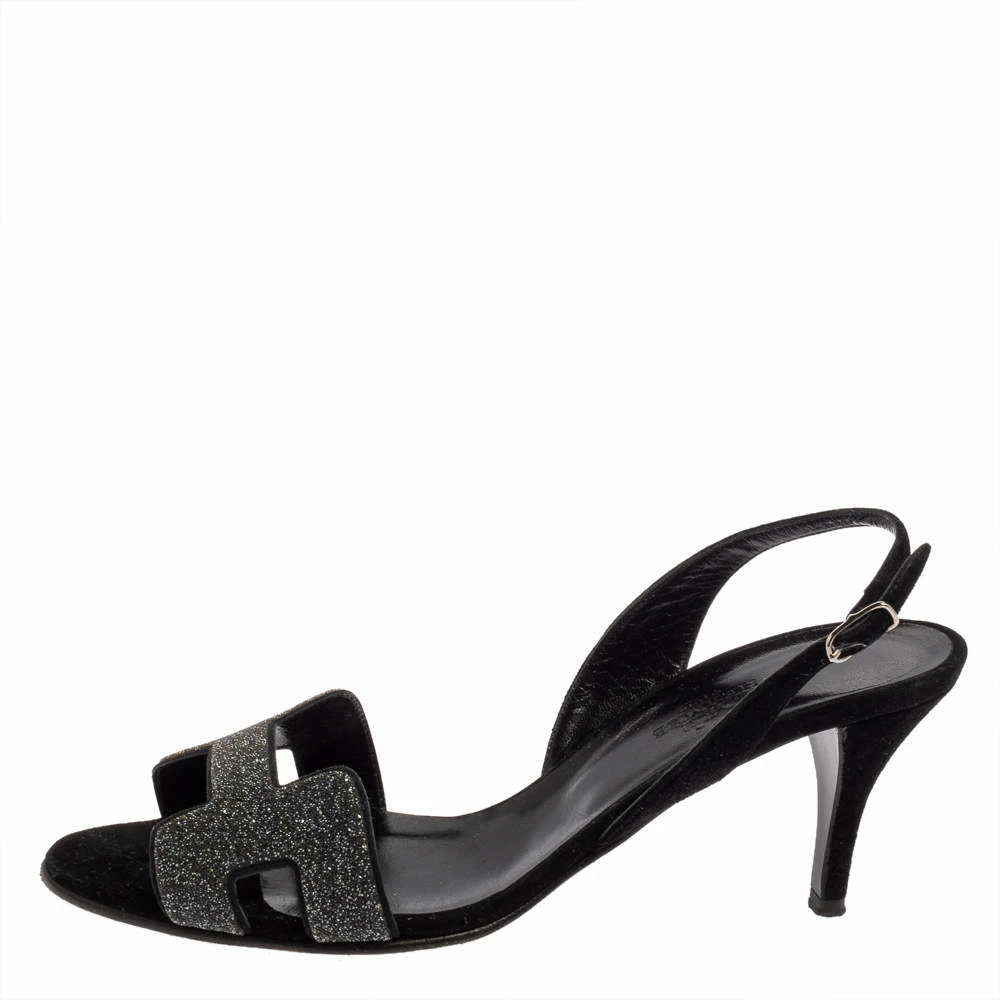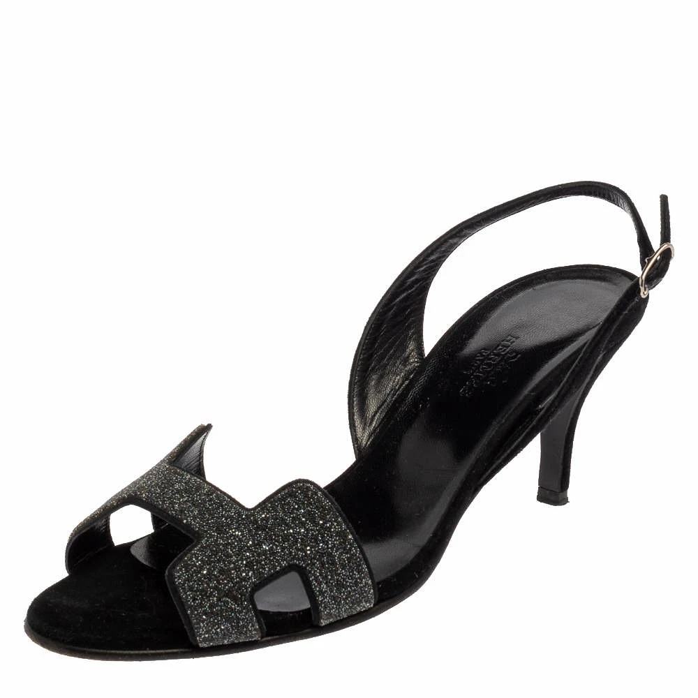Put your best foot forward wherever you go in these pretty Hermes sandals. They’ve been crafted from quality suede & glitter in Italy and feature the iconic H on the vamp. A slingback strap and low 7 cm heels beautifully complete the pair. These sandals are sure to attract admirers!