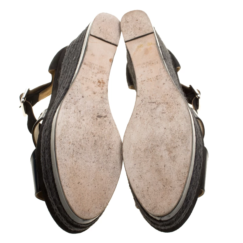 Leave all in awe when you sashay out in this spellbinding pair of sandals from Hermes. The pair has been designed with front H straps made from patent leather and covered counters and ankle fastenings made from suede. But it is their set of 8 cm espadrille wedges that makes them such a standout.