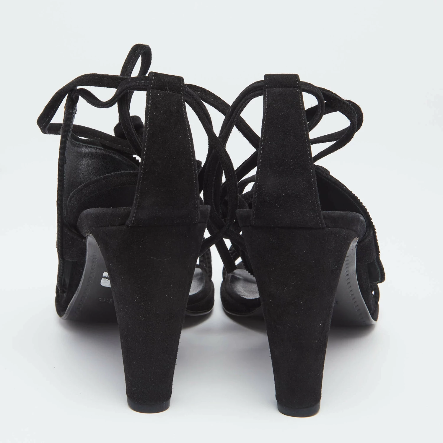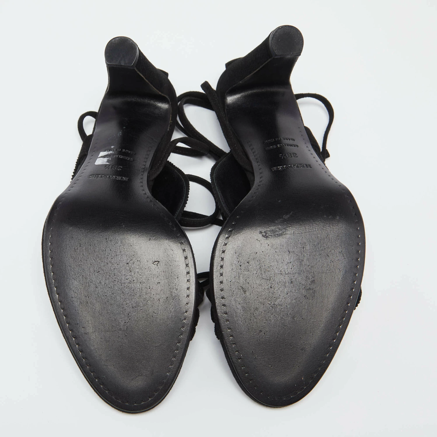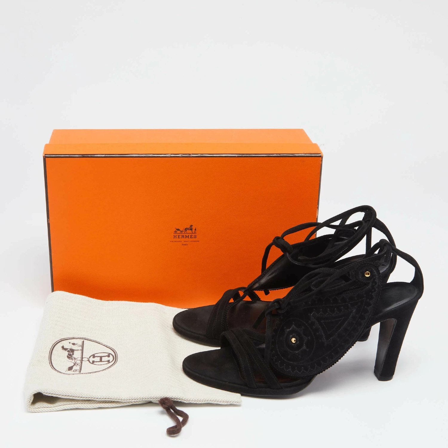 Frame your feet with these Hermes sandals. Created using suede, the shoes have embroidered uppers, ankles wrap ties, and 9 cm heels. They’ll be perfect with short, midi as well as maxi hemlines.