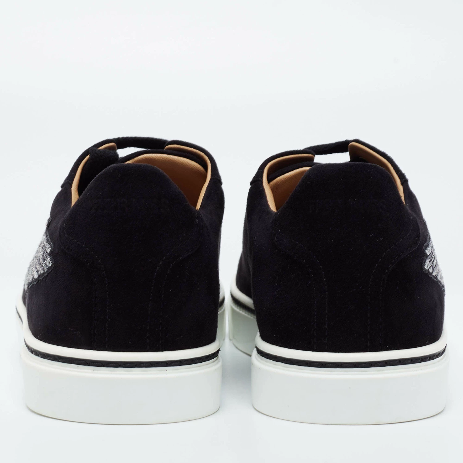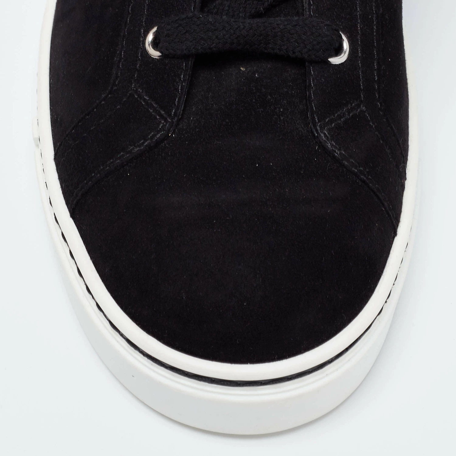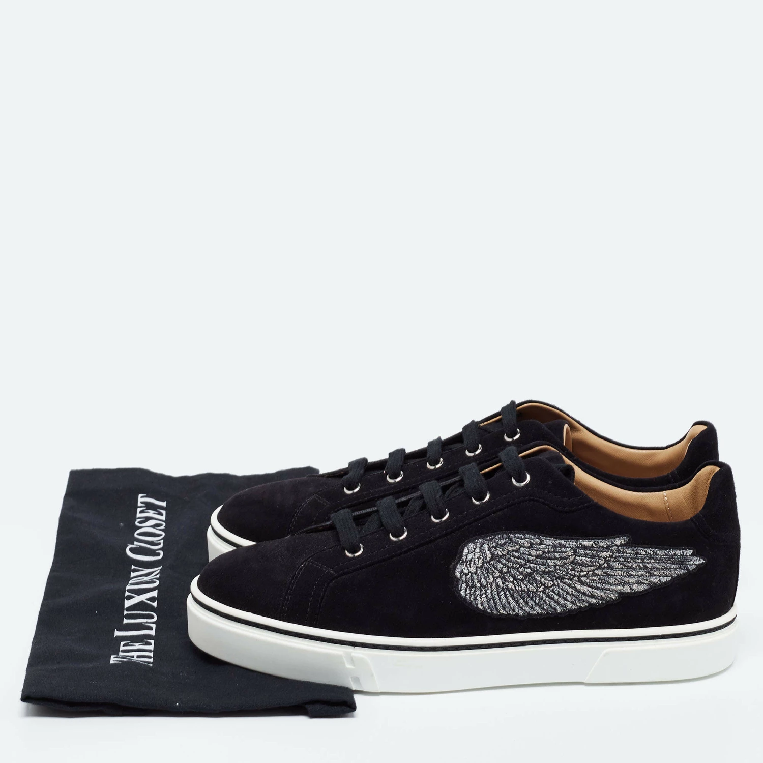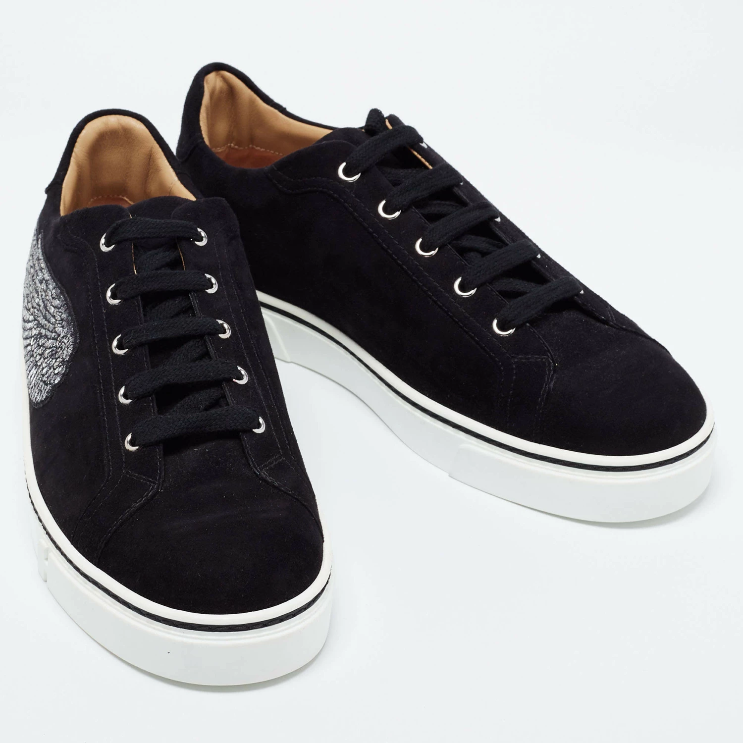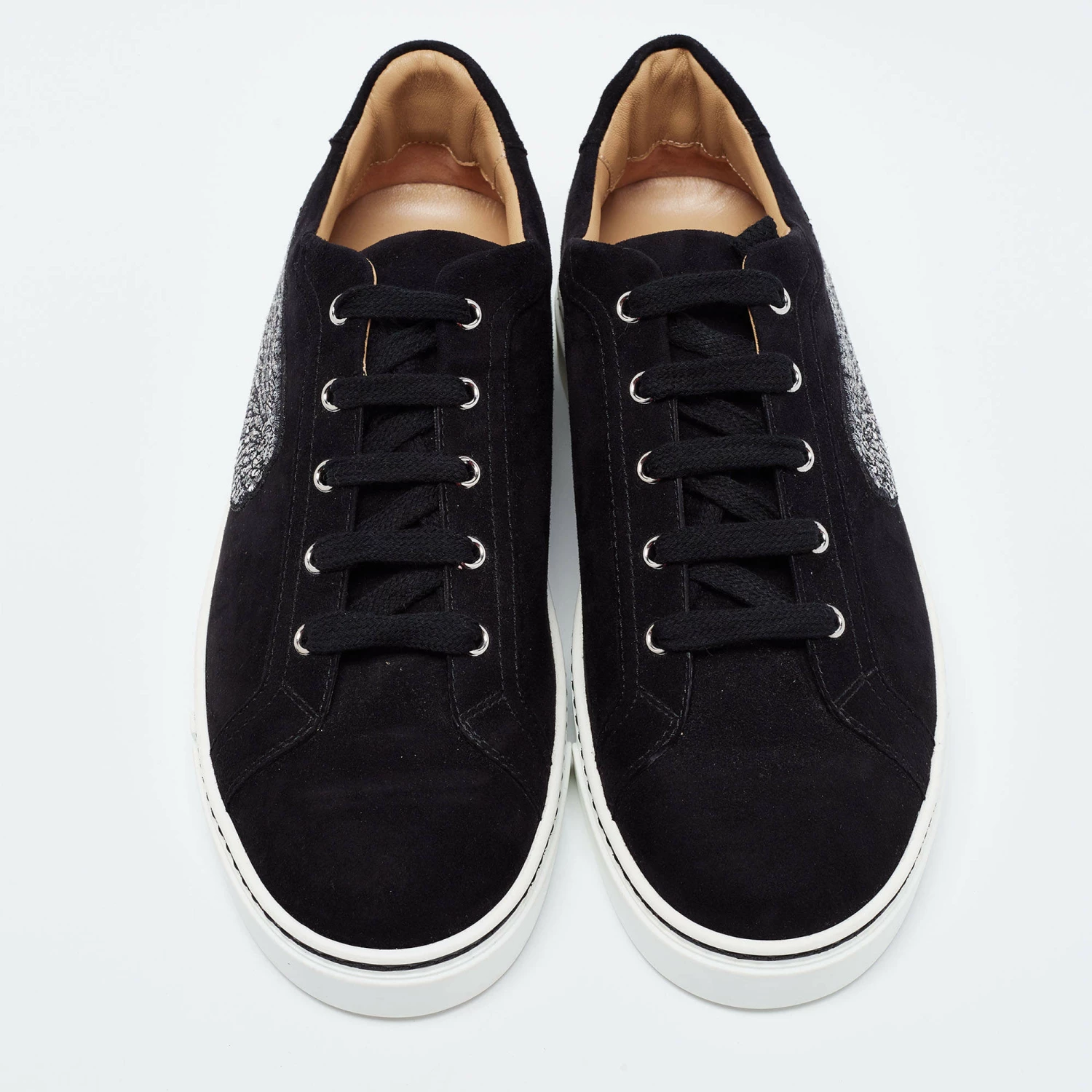 These sneakers from the House of Hermes are super sturdy, stunning, and stylish. They are crafted from black suede into a low-top silhouette. They showcase lace-up fastenings, silver-tone hardware, and an embroidered Wing motif on the vamps. Add these trendy sneakers to your collection now!