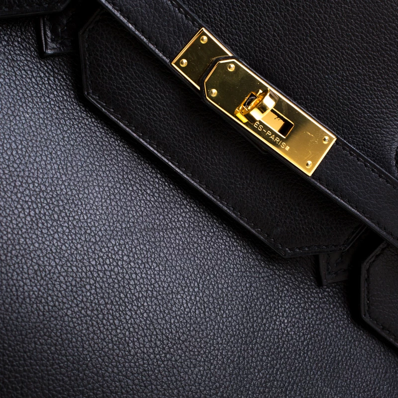It was a significant day in the history of handbags when Jane Birkin met Jean-Louis Dumas, Chief Executive of Hermes in 1981. The meeting led to the creation of the Birkin; a bag that is no less than a blessing to the world of luxury. The beauty here in black has been handstitched using Swift leather and fitted with the signature turn lock in gold-tone. Dual handles are placed on top, and the flap secures the spacious leather interior for your belongings. A padlock and a clochette accompany the bag, and as a finishing touch, metal studs are detailed on the bottom. Long hours of precise workmanship have gone into creating this wonder that needless to say, it deserves to be in the arms of an admirer of fine art like yourself.