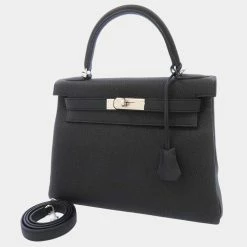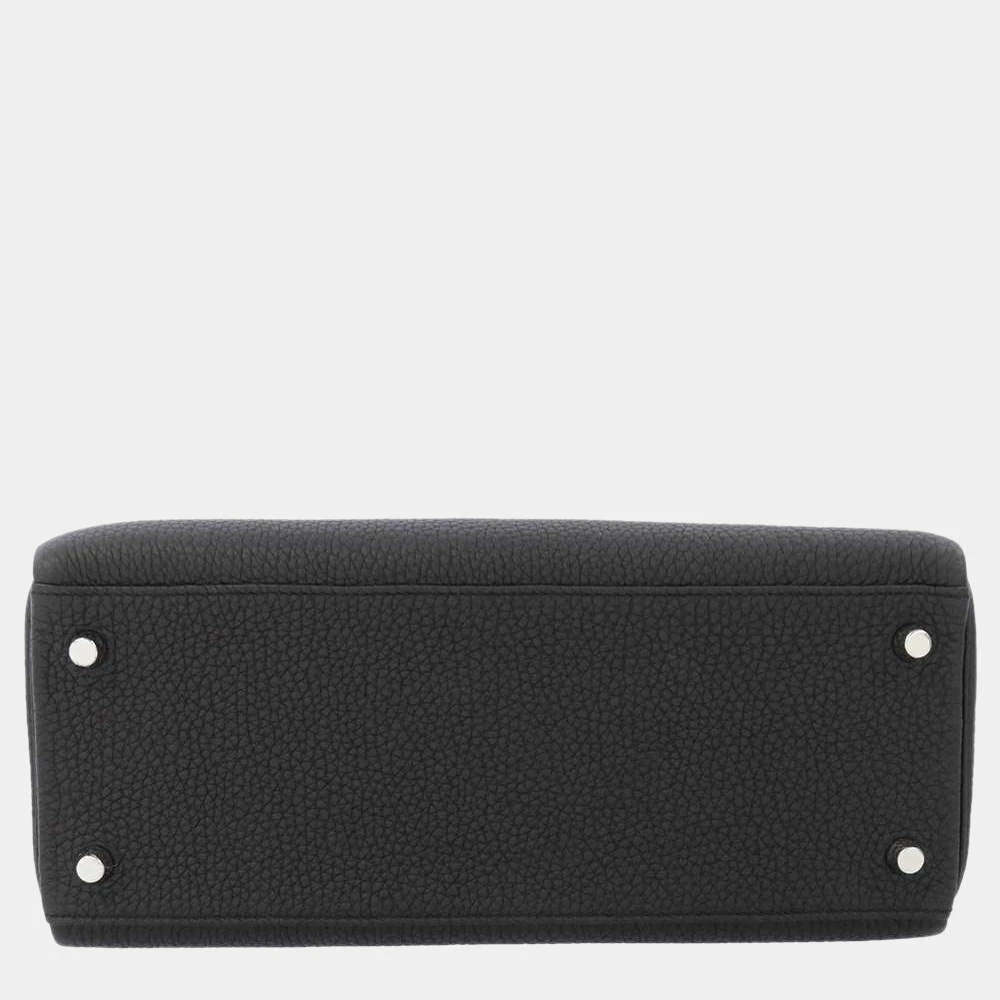Looking to invest in a luxurious designer bag? Go for this chic Hermes Kelly bag. Crafted from black Togo leather, this elegant bag is characterized by a rolled top handle, palladium hardware, padlock, clochette, and detachable shoulder strap. This well-balanced bag has roomy interiors to hold all your belongings.