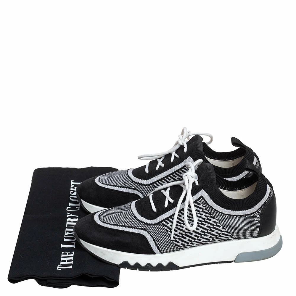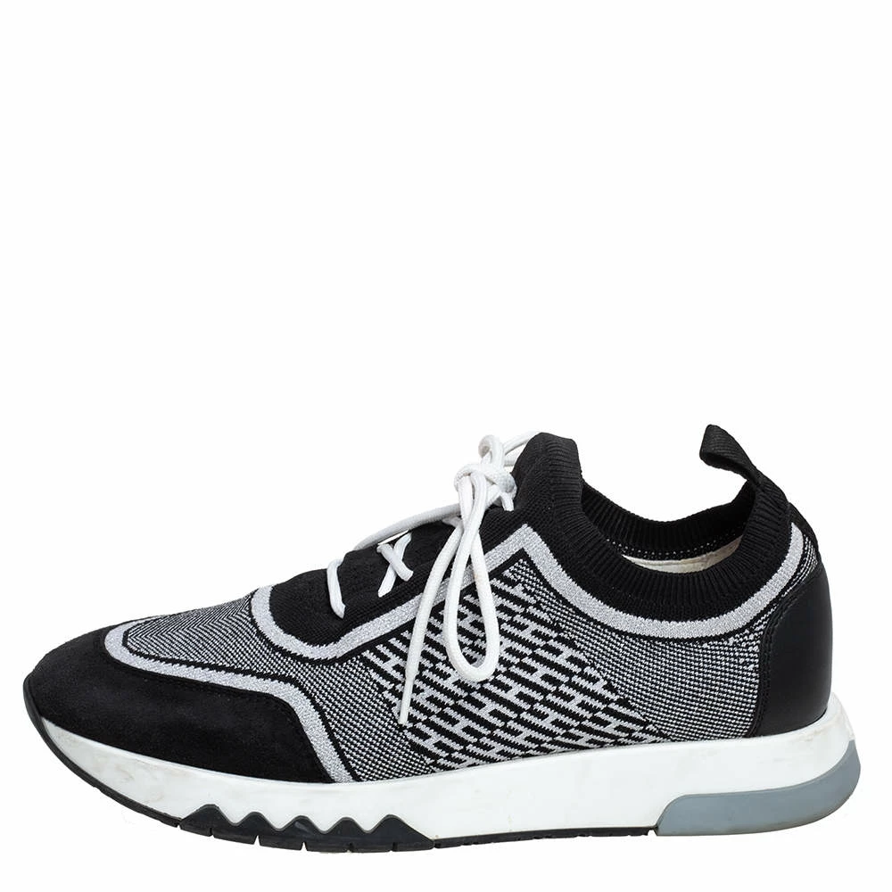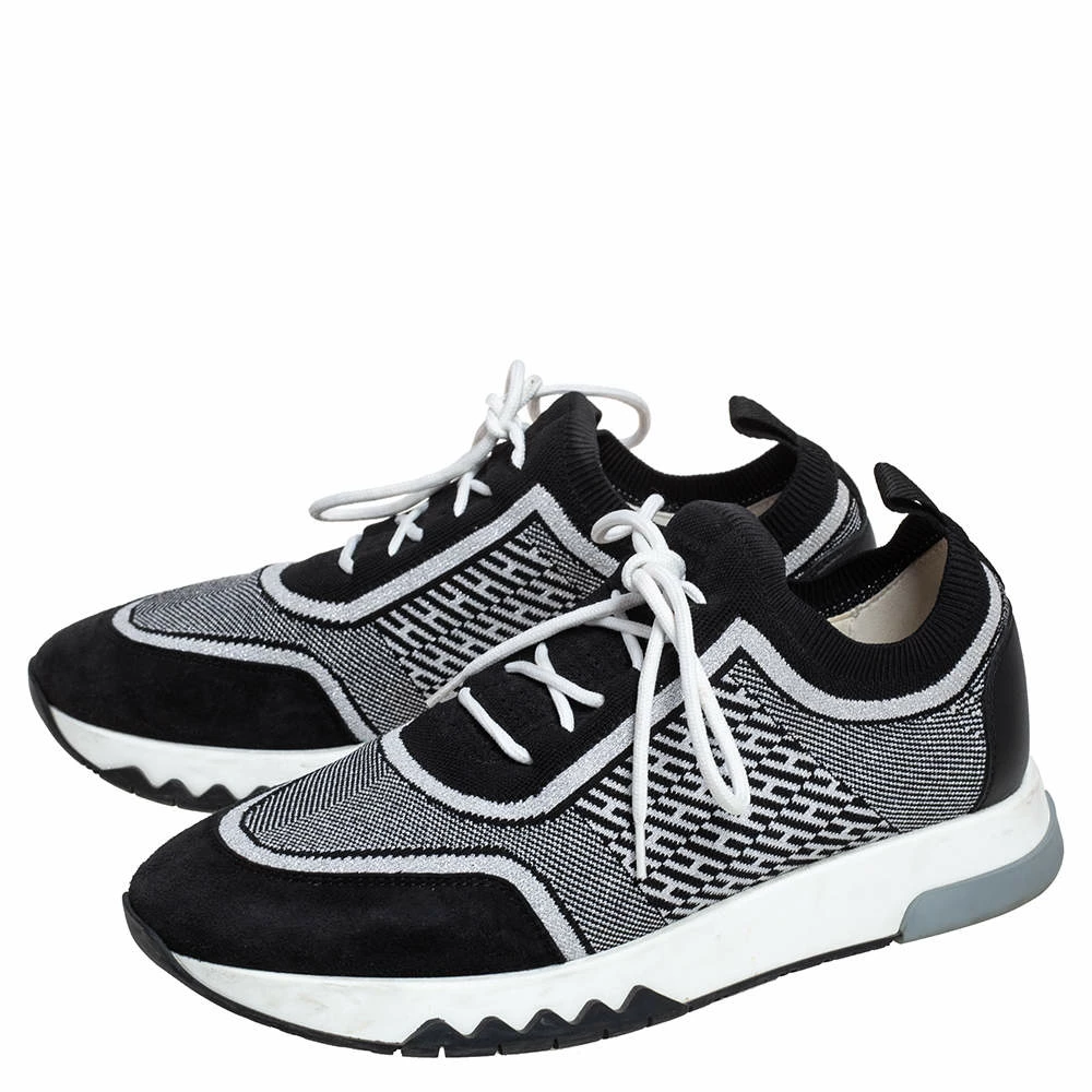 The Addict sneakers by Hermes present a classic style in a modern tone. These are crafted in knit fabric and suede to achieve an optical illusion effect. The sneakers are secured with lace-ups and equipped with rubber soles offering a good grip.