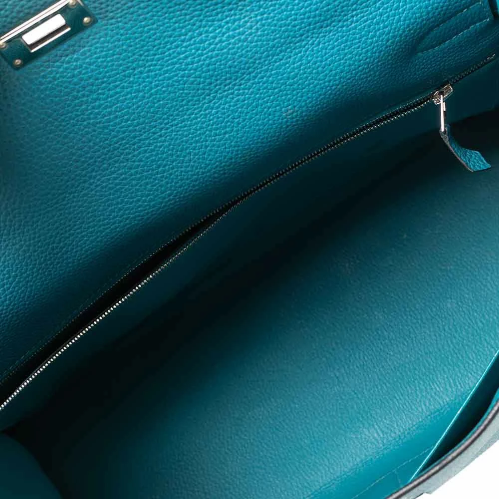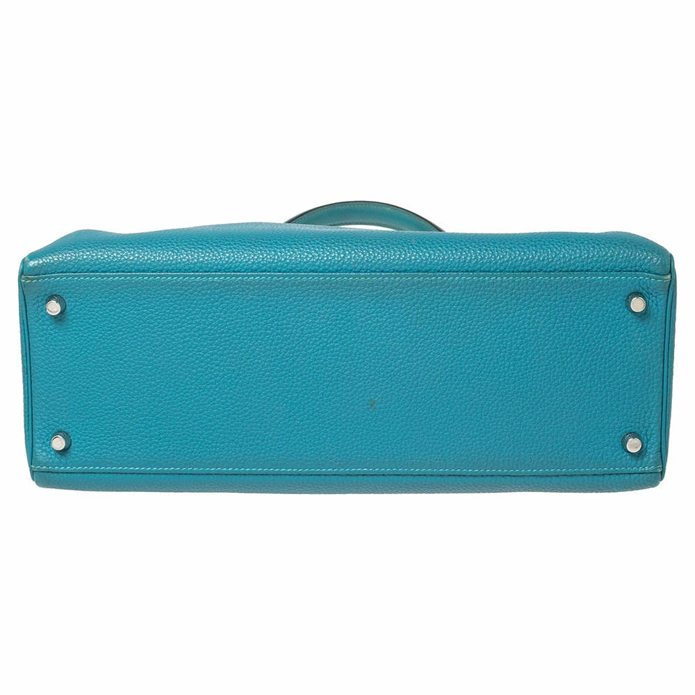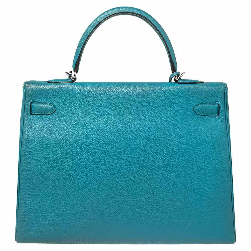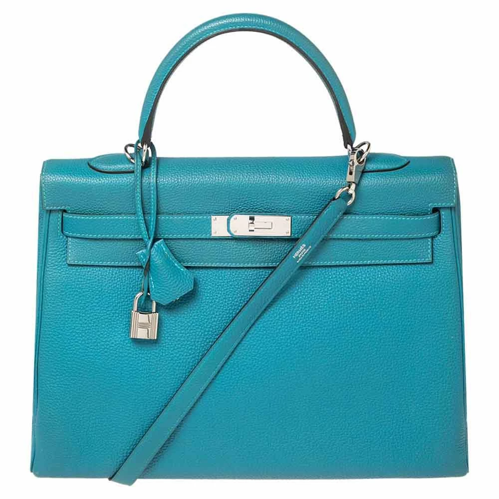 The Hermes Kelly is beautiful as it is carefully hand-stitched to perfection. This Kelly Retourne is crafted from Togo leather and has palladium-finish hardware. Retourne has a more casual look and is stitched on the inside thus making its edges softer. The bag comes with a turn-lock closure, single top rolled leather handle, shoulder strap, and a padlock with its keys within a clochette. The leather-lined interior houses pockets and enough space to easily fit in all your daily necessities. Invest in this beauty today!