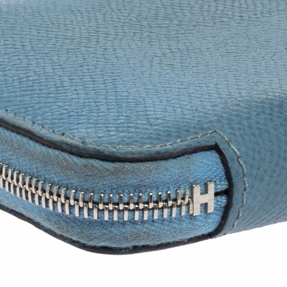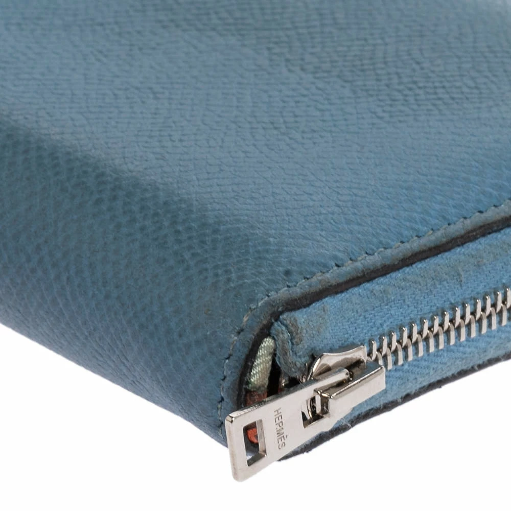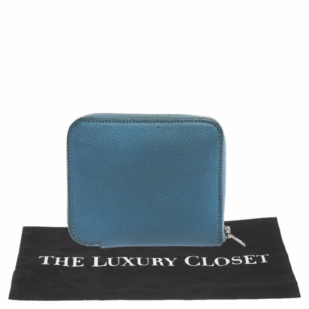 The Azap compact wallet by Hermes in Epsom leather brings a luxurious appeal and high quality. The wallet has slots for your cards, a zip pocket for your coins, and open compartments.