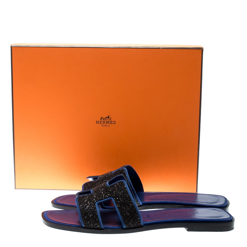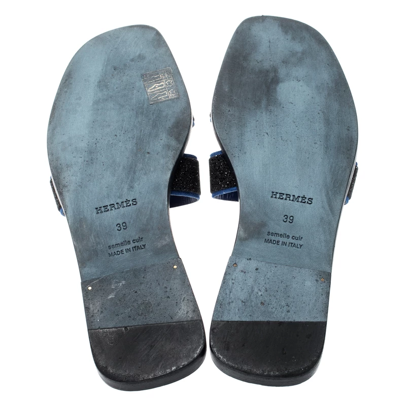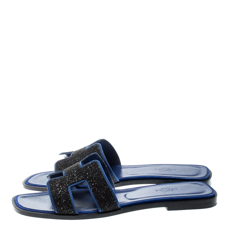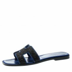Stunning in appeal and high on style, these Oran sandals are sure to gaze many eyes your way. Crafted from suede and embellished with crystals, this Hermes pair comes with a comfortable leather sole. This pair looks extremely beautiful in a combination of blue and black shade.