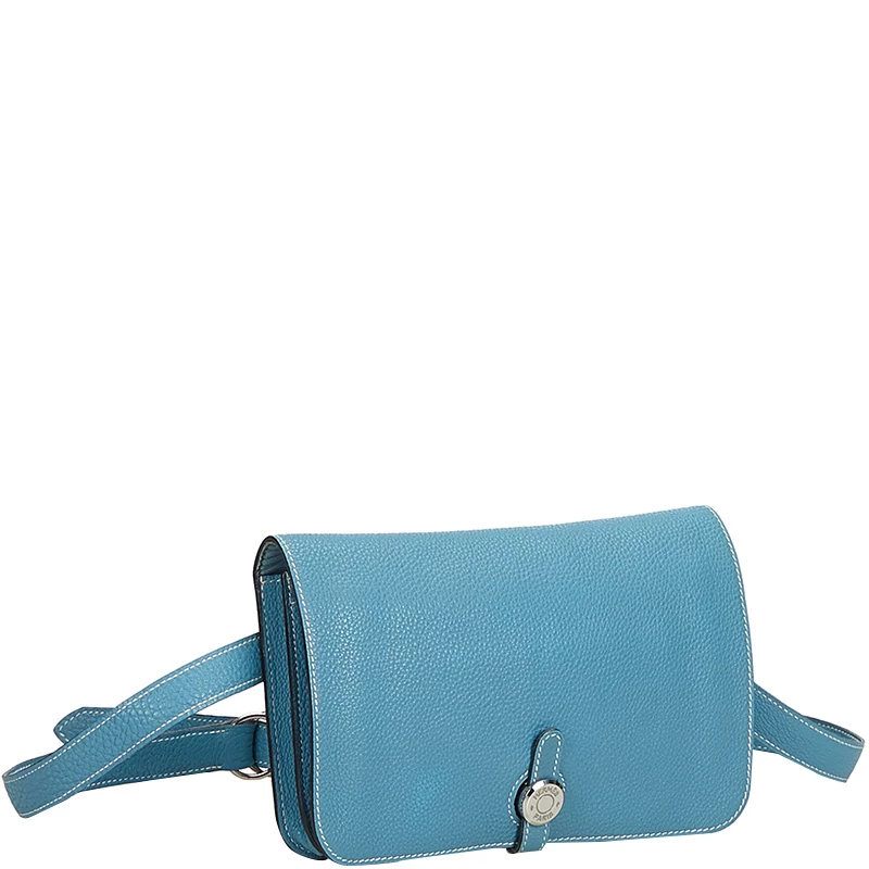 Make a stunning appearance every time you carry this classic belt bag by Hermes. Carry this cool blue bag to finish your laid-back everyday look. This exotic calf leather bag makes for a statement making appearance.