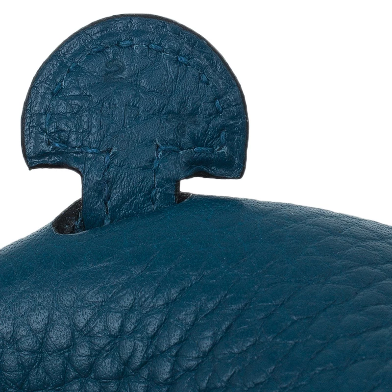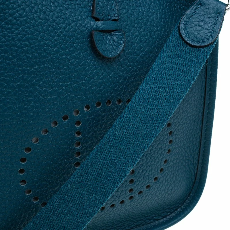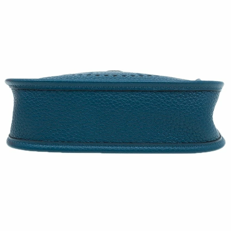 Add a splash of color to your everyday outfits with this Hermes Clemence TPM bag. It features, a gorgeous bright blue color textured exterior, with a perforated H logo at the front, and a removable shoulder strap. The cross over strap on the top opens up to a blue suede lined interior.