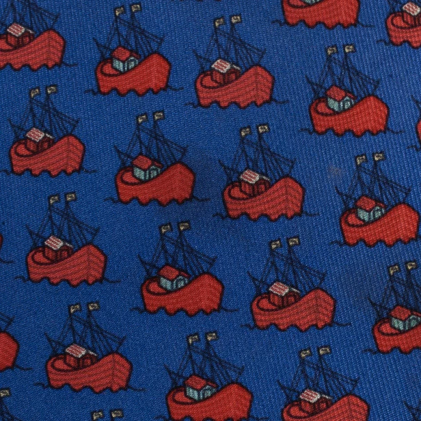 This Hermes Print Silk Tie is perfect for adding a twist to your look. Crafted from silk, this tie features fishing trawler ships boats patterns in blue and red.