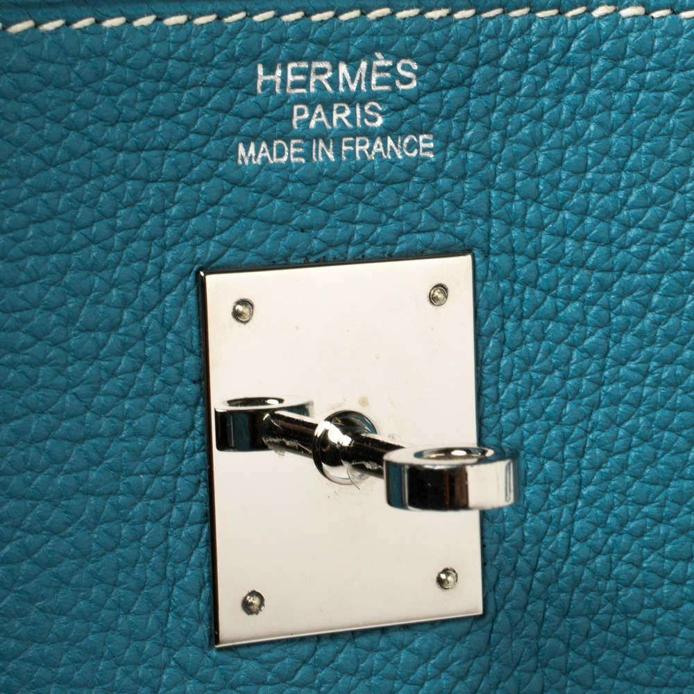 Hermes Birkin was inspired by Jane Birkin and is one of the most desired handbags in the world. A timeless classic that never goes out of style. Handcrafted from the highest quality of leather by skilled artisans, it takes long hours of rigorous effort to stitch a Birkin together. Crafted in France from leather, the bag features dual top rolled handles and a padlock with its keys within a clochette. The bag comes with palladium-tone hardware and has a spacious leather lined interior that will hold all your belongings. High quality and flawless craftsmanship are synonymous with Hermes. Durable and resistant to wear, the Birkin is a heritage that can last many years.