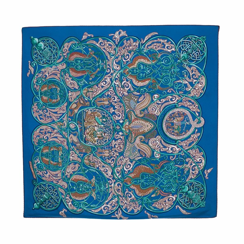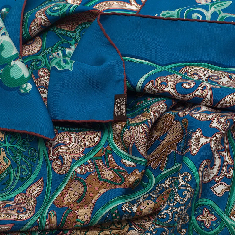 This silk scarf invites you to take a stroll in the exotic gardens of paradise. Made from silk, the scarf features aesthetic delights of gardens blending subtle colors together.