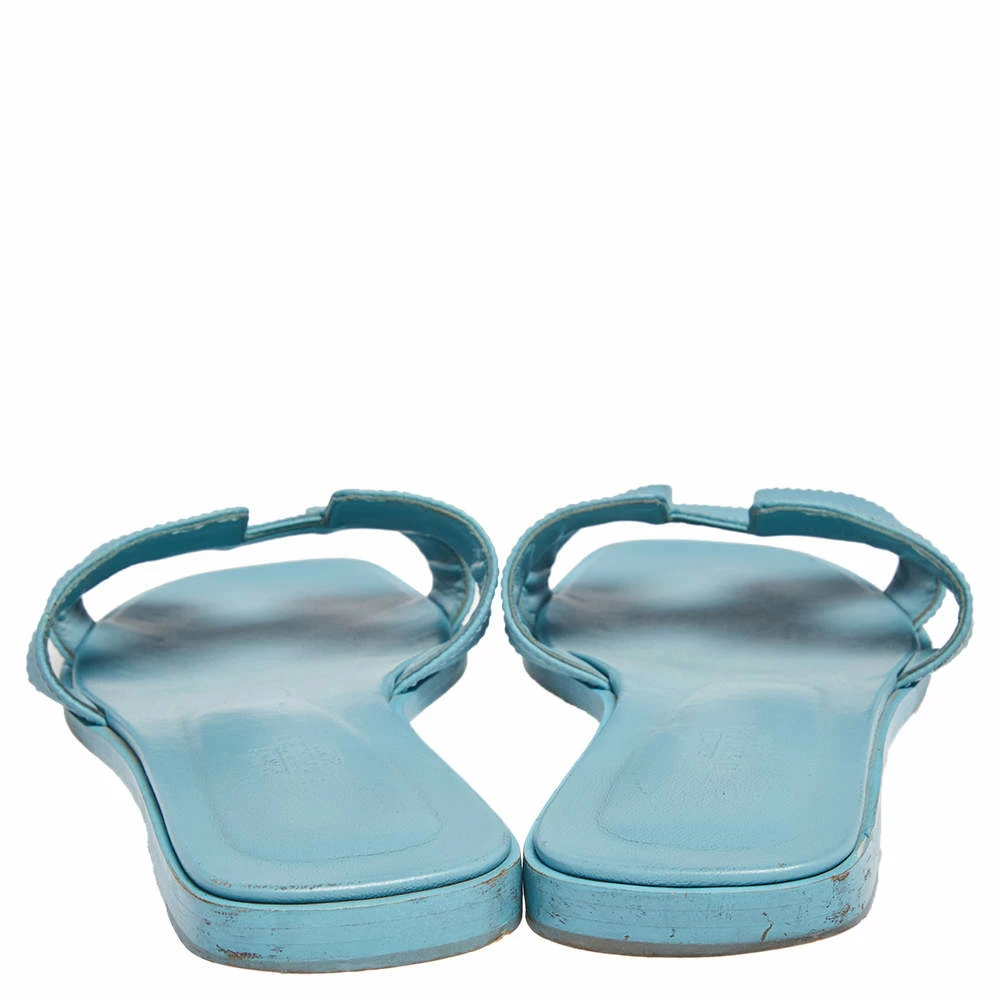Put your best foot forward this season in these pretty Hermès flats. These blue Oran slides have been crafted from leather in Italy and they feature the iconic H on the vamps as well as insoles meant to provide comfort at every step. These sandals are sure to attract admirers!
