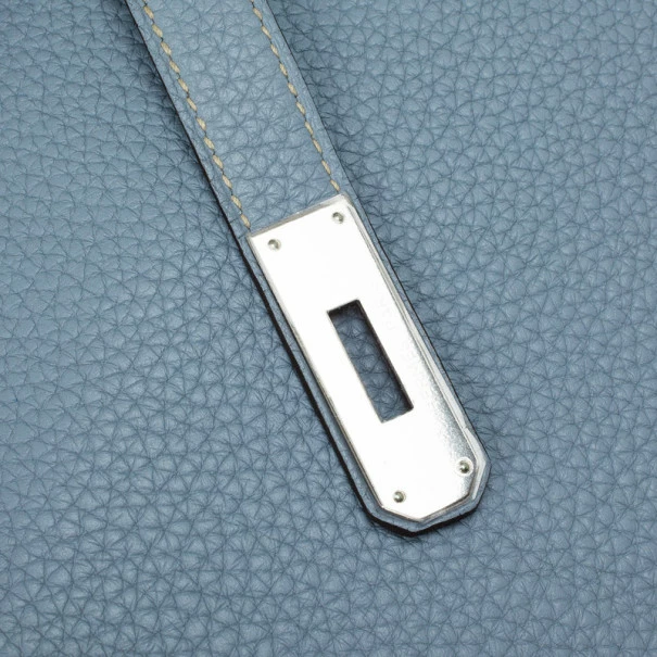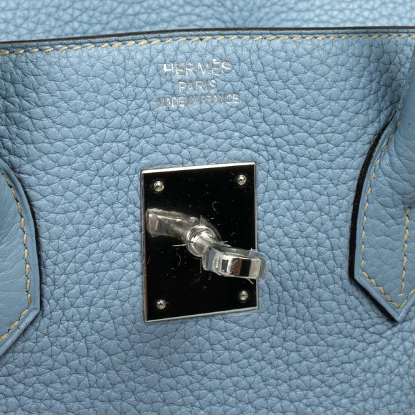 Hermes Blue Lin Clemence Leather Birkin 35 CM For Women