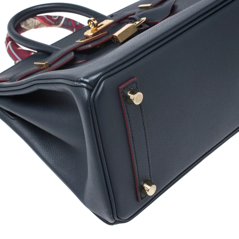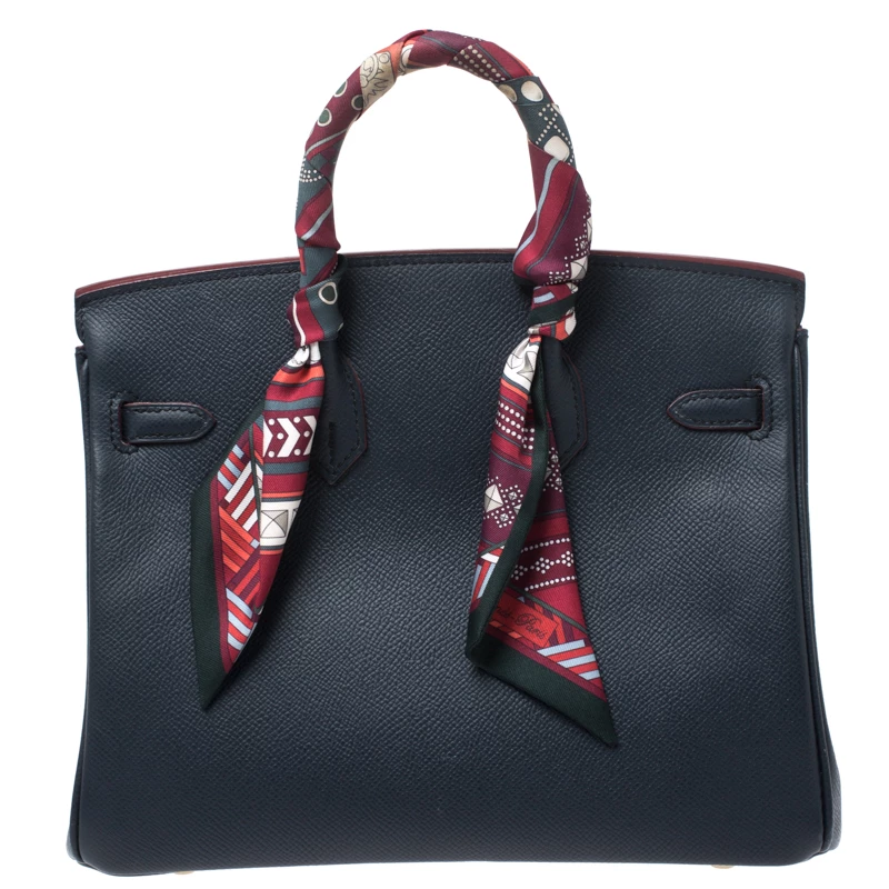 Inspired by Jane Birkin, the Hermes Birkin is one of the most desired handbags in the world. Over the years, it has risen to become a timeless classic that never goes out of style. Handcrafted from the highest quality of leather by skilled artisans, it takes long hours of rigorous effort to stitch a Birkin together. Crafted in France from Epsom leather, this Birkin 25 bag features two twilly-wound handles and a padlock with its keys within a clochette. The bag comes with gold-tone hardware and has a leather-lined interior that will easily hold your belongings. Durable and resistant to wear, the Birkin is a heritage that can last many years.