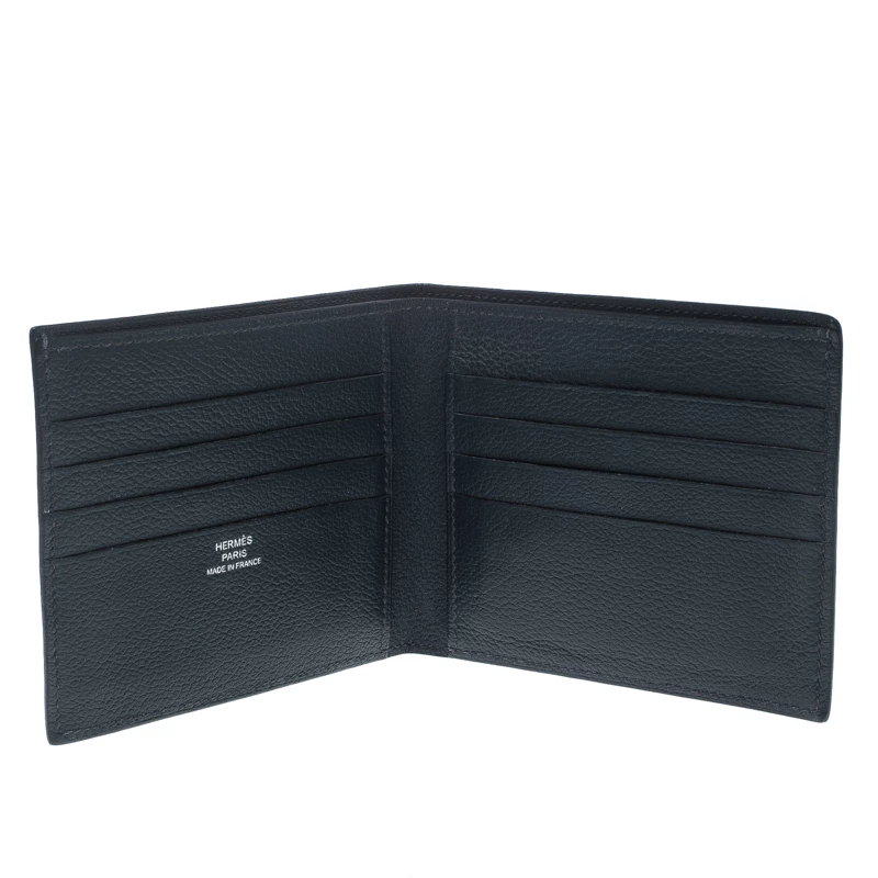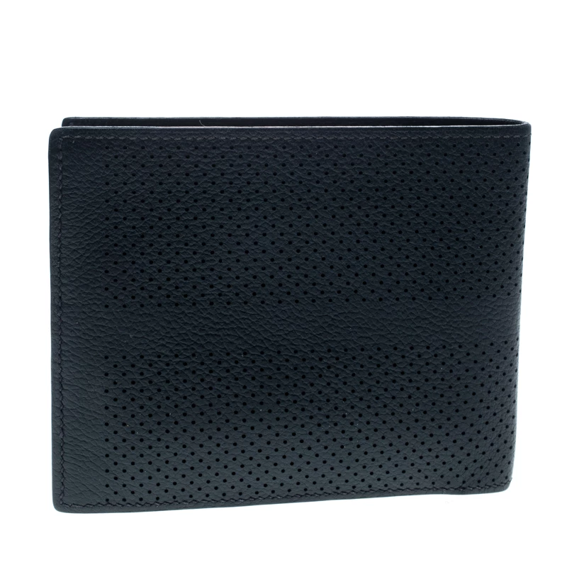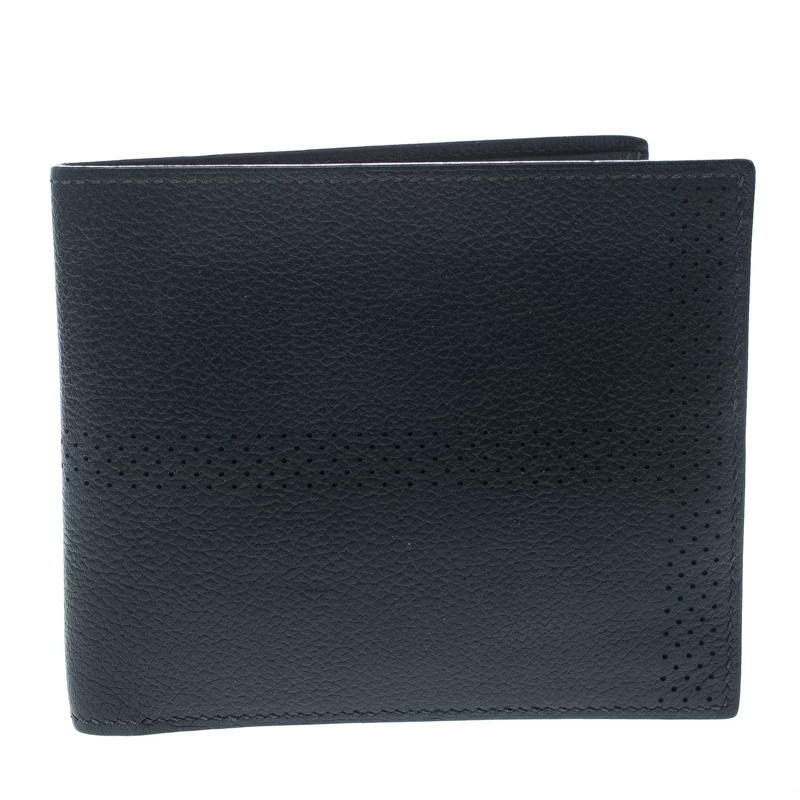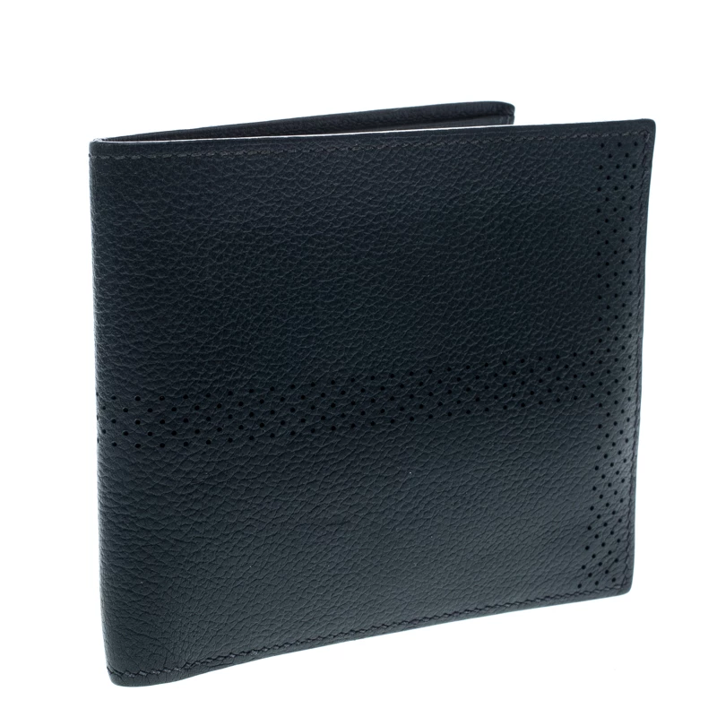 This wallet from Hermes brings along a touch of luxury and immense style. It comes crafted from blue orage leather and designed as a bifold with perforated details on the exterior. It is equipped with compartments and multiple slots so you can neatly carry your cards and cash.