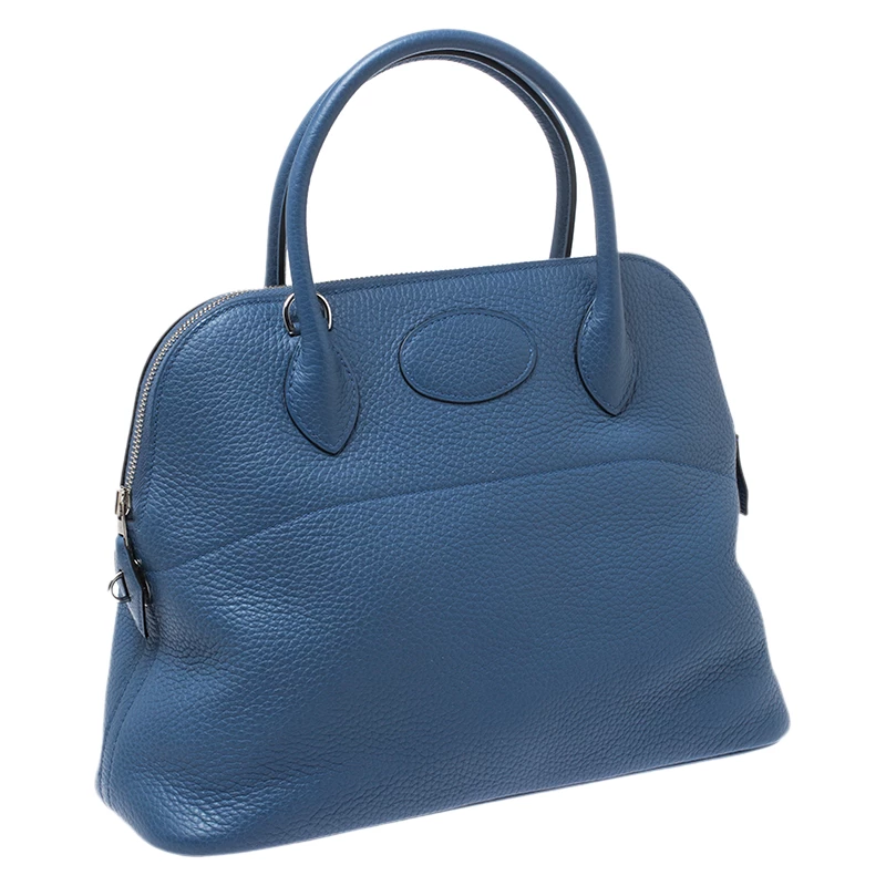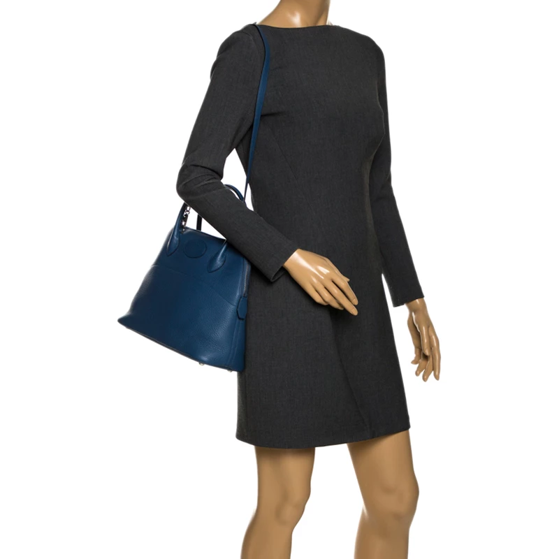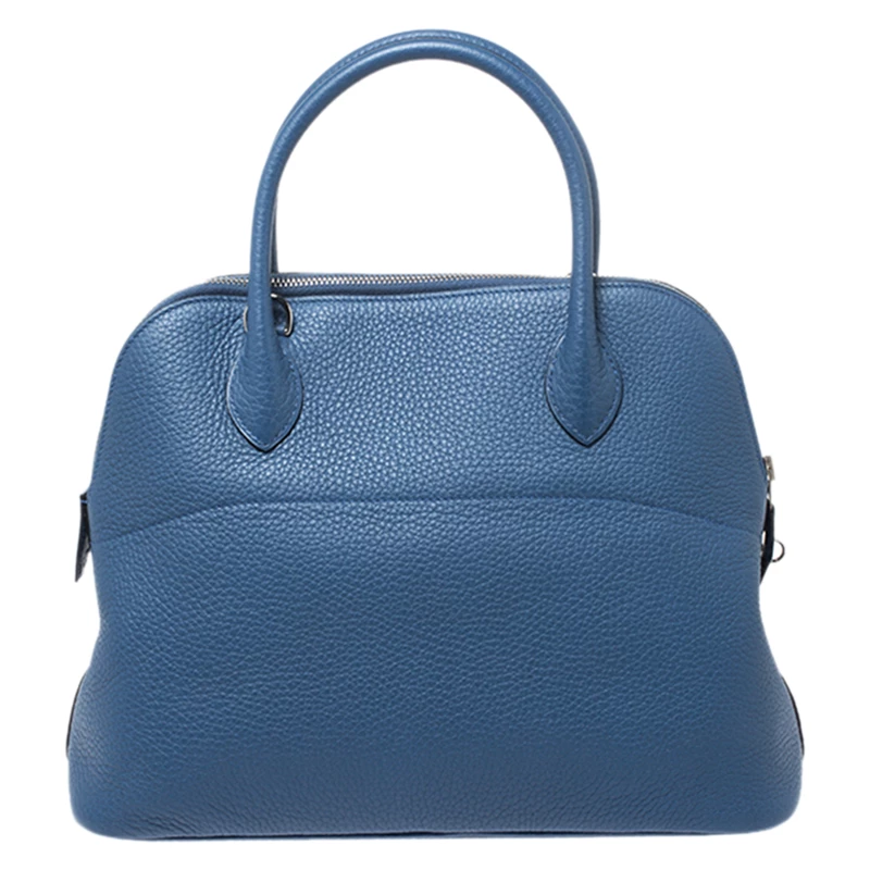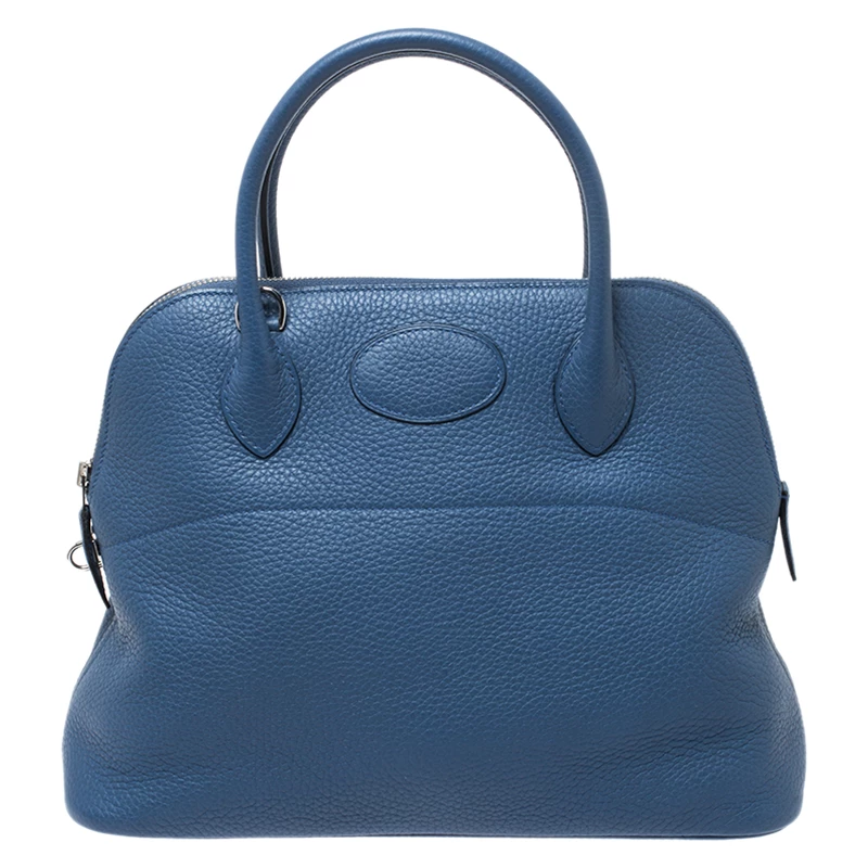 Luxuriously crafted by the experts at Hermes, this stunning Bolide bag is a must-have accessory for fashion lovers. An apt everyday wear bag, it is the perfect combination of sophistication and practicality. Crafted from blue sapphire Togo leather, this bag features a top zipper closure and a leather interior that provides ample storage space for all your essentials. The bag features silver-tone hardware and it can be worn on your arms with the two top handles or comfortably on the shoulder with the long strap.
