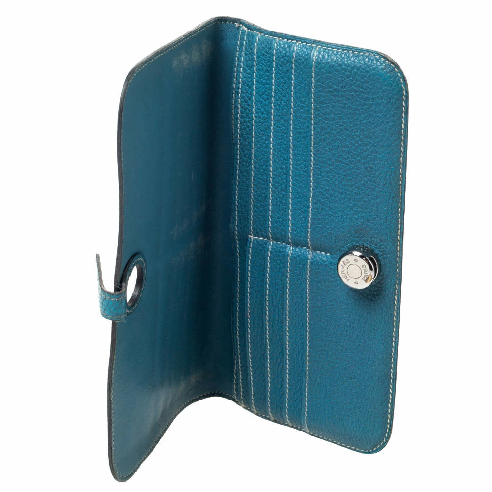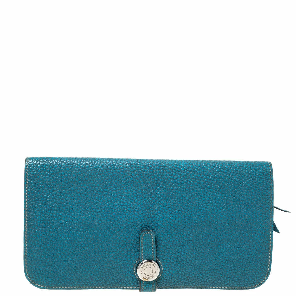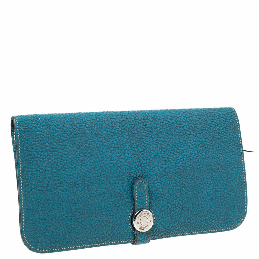Crafted to perfection, this Hermes Dogon wallet is both beautiful and functional. Shaped well, the piece has an engraved button closure that opens to show leather compartments. It is sized to hold your cards with ease and also fit into your handbags.