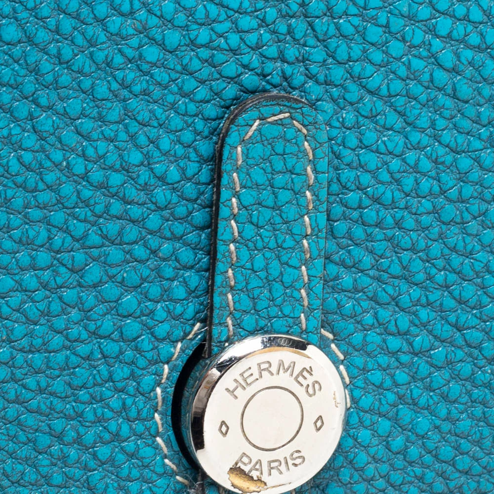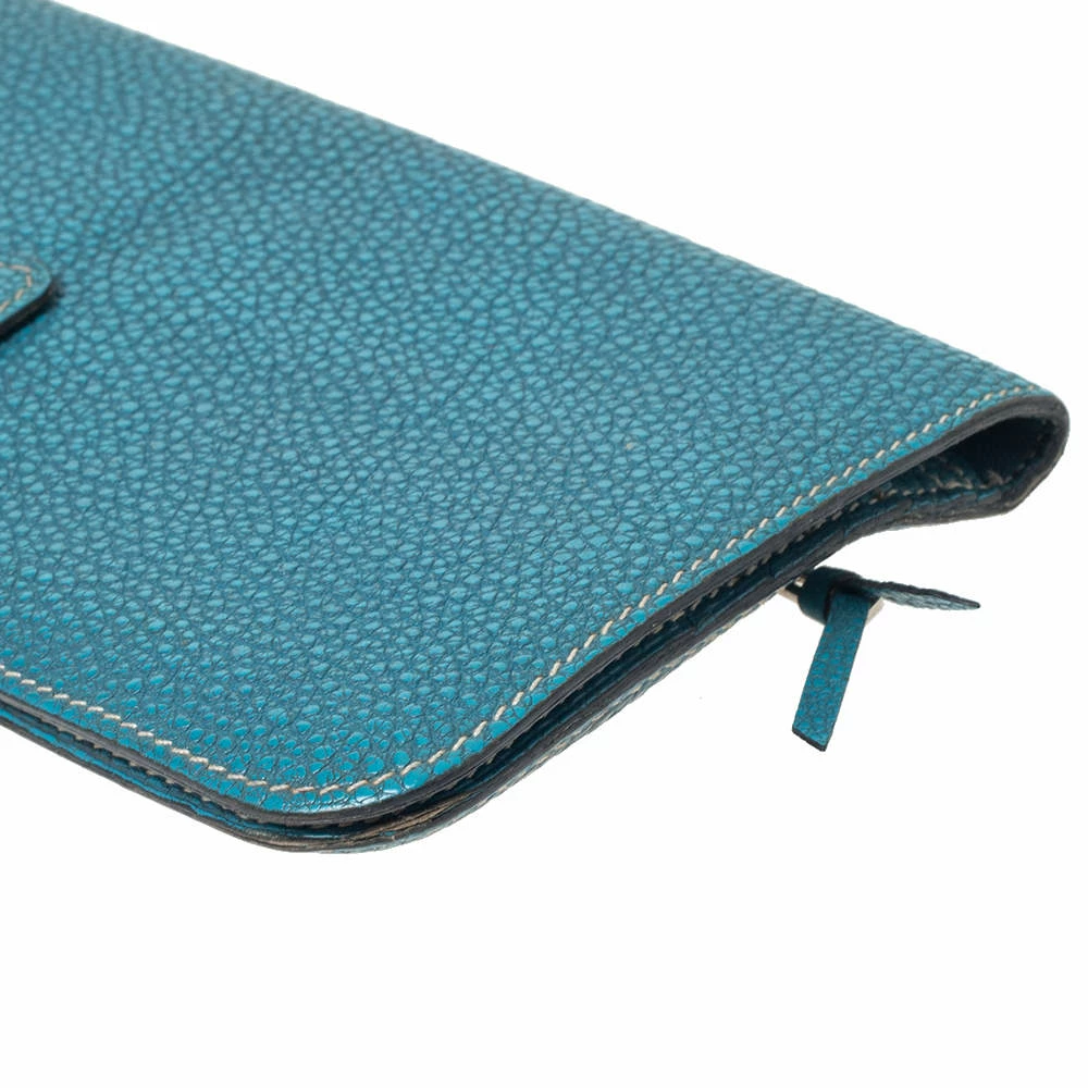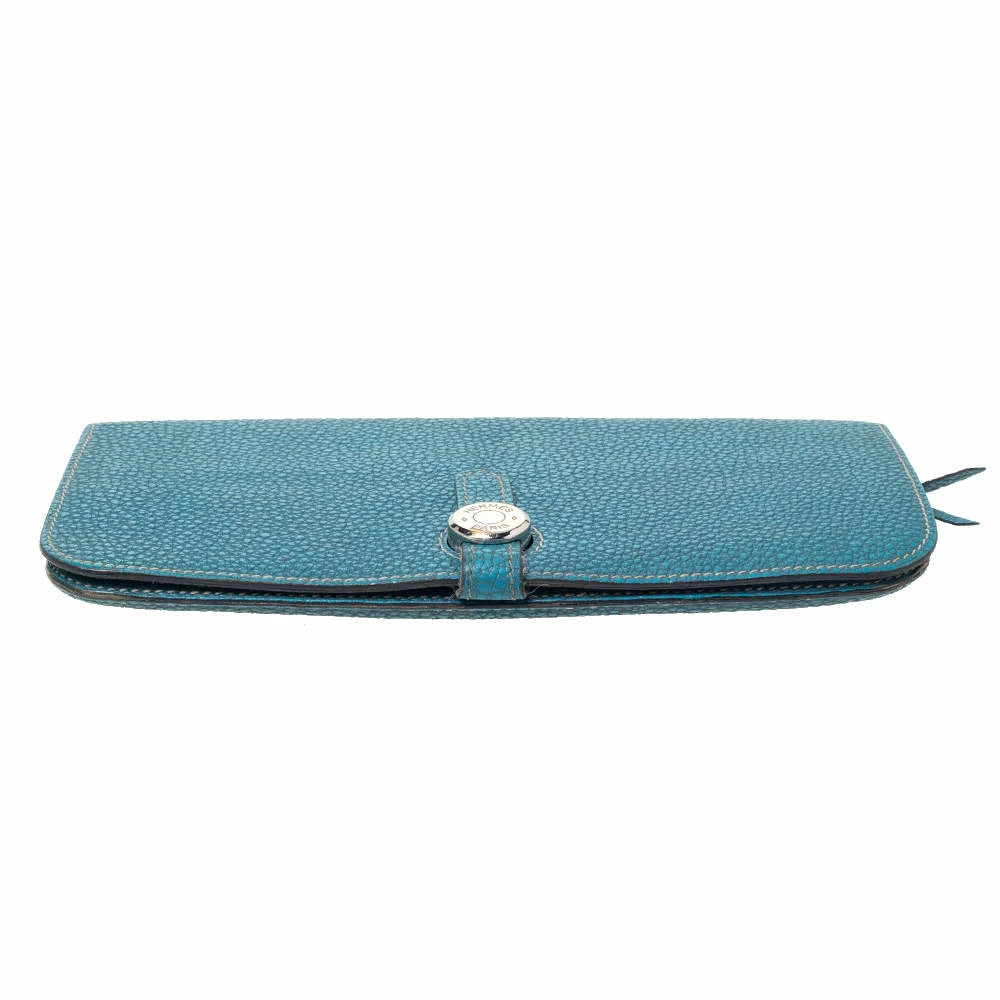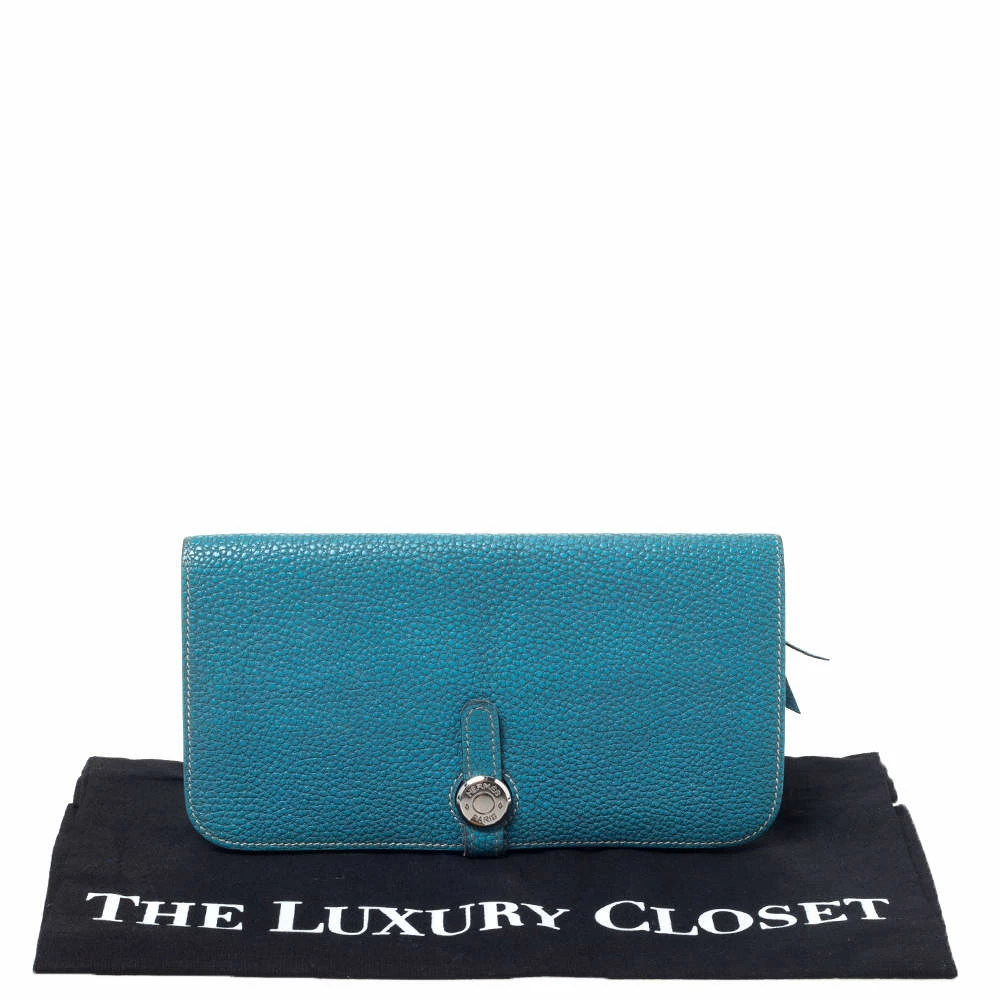 Crafted to perfection, this Hermes Dogon wallet is both beautiful and functional. Shaped well, the piece has an engraved button closure that opens to show leather compartments. It is sized to hold your cards with ease and also fit into your handbags.