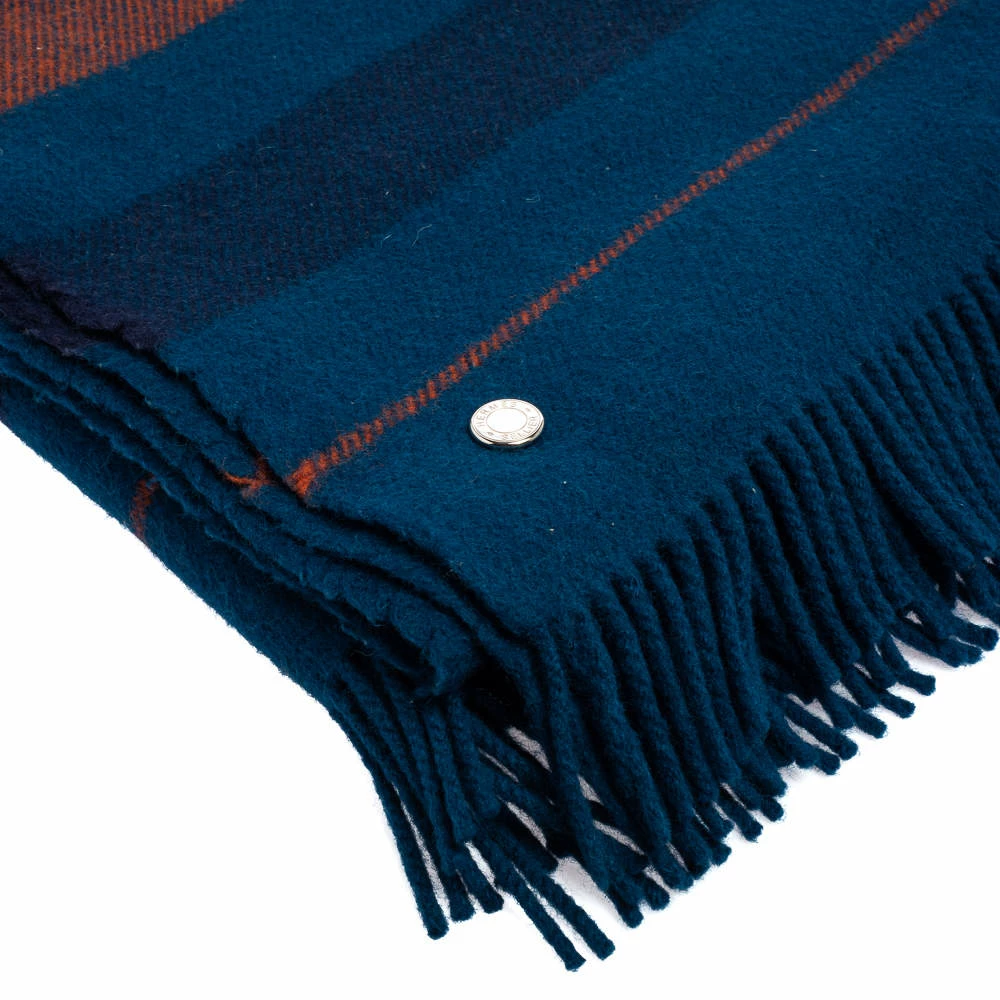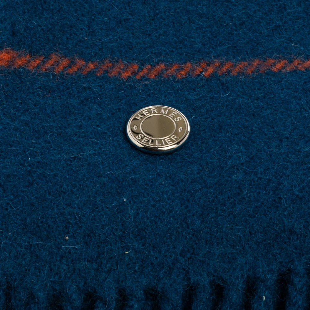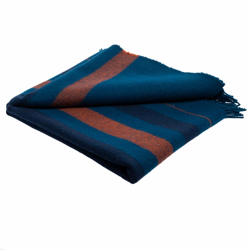 Add the signature magic of Hermes to your winter edit with this blanket. Made from soft wool, the blue blanket has fringed edges and contrasting stripes.