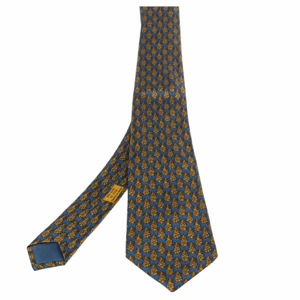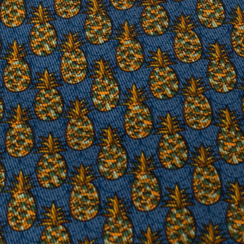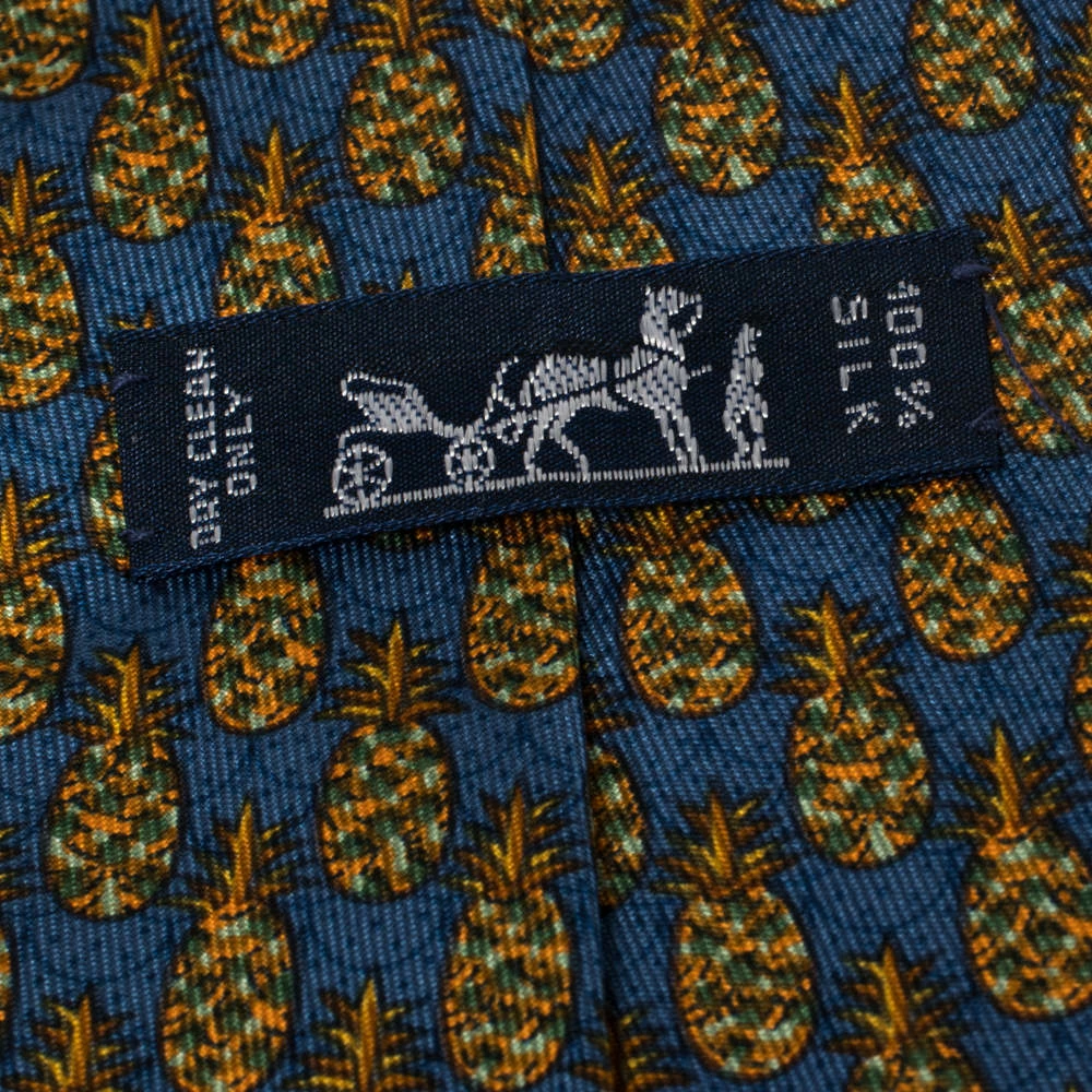 This Hermés tie is a perfect formal accessory that has a sharp and modern appeal. Made from silk, it features blue and yellow shades and, cute pineapple prints for a quirky touch, the brand label neatly stitched at the back. It is sure to add oodles of style to your blazers.