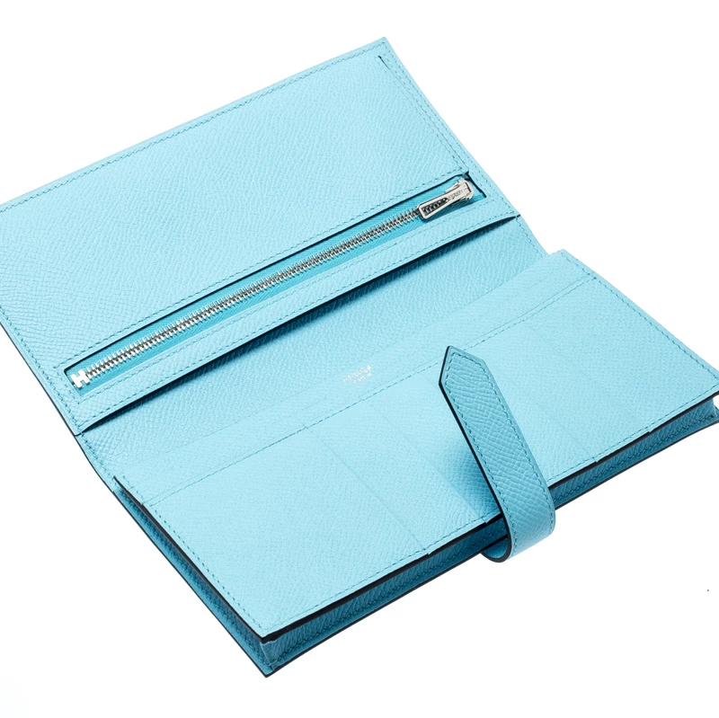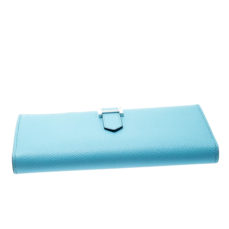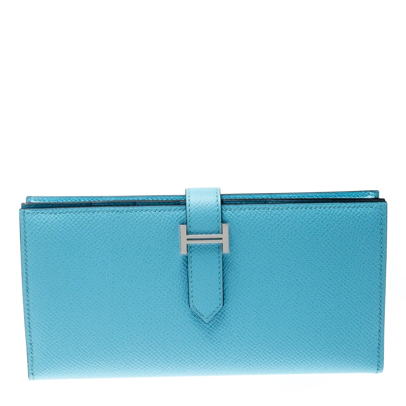 Luxuriously crafted by the experts at Hermes, this stunning Bearn Gusset wallet is a must-have accessory for fashion lovers. Crafted in Zephyr Epsom leather, this wallet features a silver-tone H where the strap can be tucked in and opened to reveal leather-lined compartments and slots for your cards and cash.