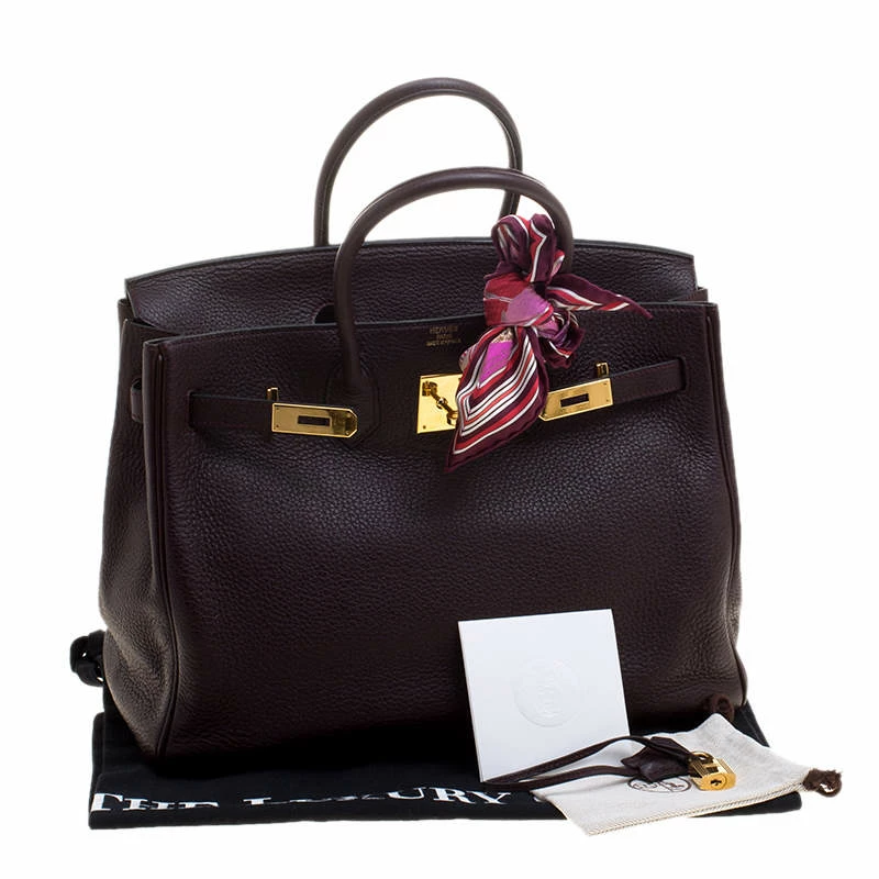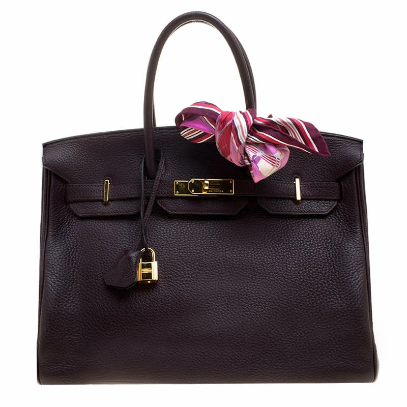 Hermes is known for its flawless craftsmanship and high quality. The Hermes Birkin was inspired by Jane Birkin and is one of the most desired handbags in the world. A timeless classic that never goes out of style. Handcrafted from the highest quality of leather by skilled artisans, it takes long hours of rigorous effort to stitch a Birkin together. Crafted in France from Togo leather, the bag features a padlock with its keys within a clochette and dual top rolled handles with a gorgeous scarf. The bag comes with gold-tone hardware and has a spacious leather-lined interior that houses a zip pocket. The Birkin 35 can hold all your daily necessities and more. Invest in this collectible as it retains its value year after year!