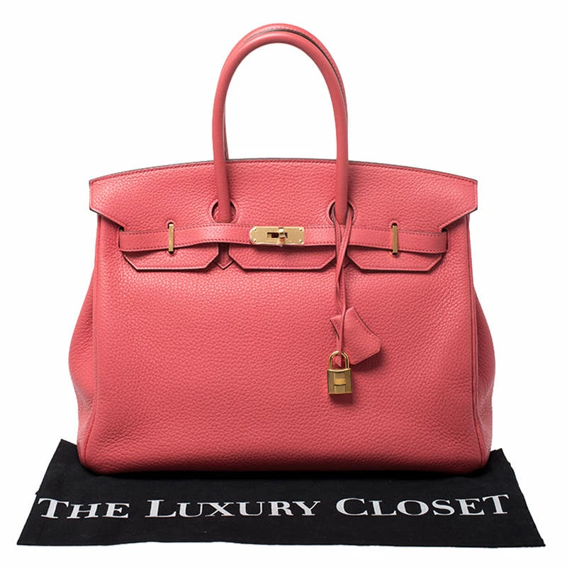A bag that has become a hallmark of luxury and class, the Birkin from Hermes is one of the most coveted bags in the world. Custom-made on the suggestions of Jane Birkin, hence the namesake, this bag is aimed to fit the wants of the fast-paced life of modern women. Timeless design coupled with rich craftsmanship, the body of this Birkin 35 bag is crafted from Clemence leather in Bougainvillier. Its foldover top is secured by gold-tone turn-lock closure which is accompanied by a padlock and a dangling key safe within a leather clochette. The interior of the bag has leather lining and is equipped with a pocket for storing little essentials. Complete with dual-rolled handles and studs at the bottom, this bag is an investment that will last you for years.