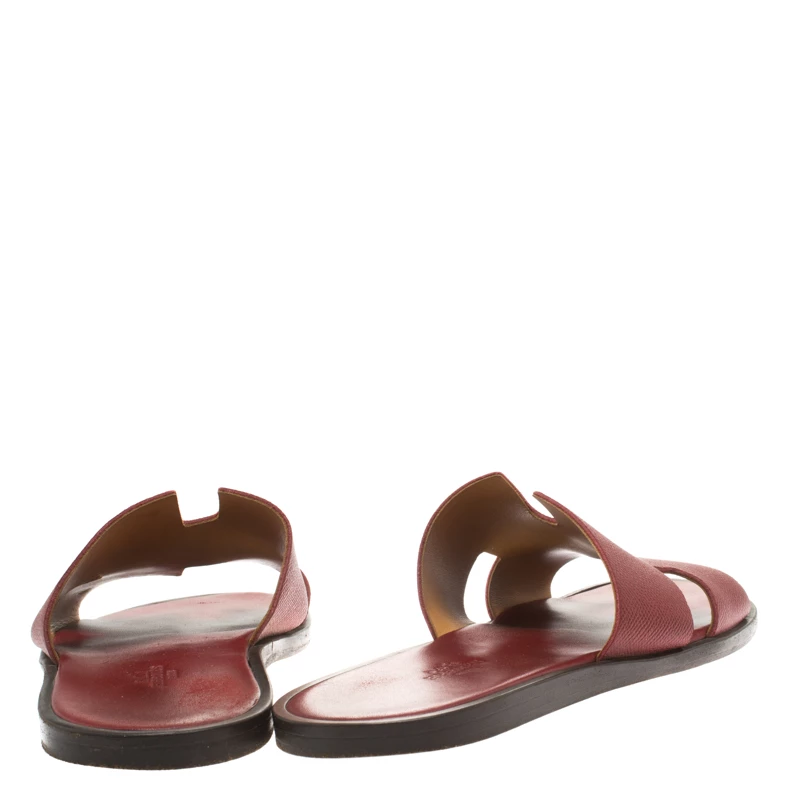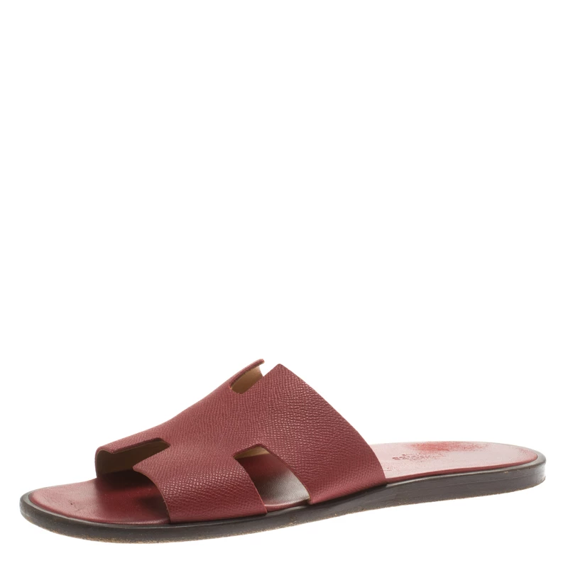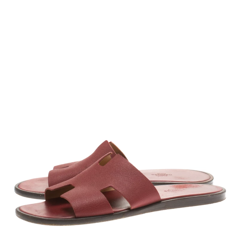 Hermes is a brand that epitomizes art and all their designs have a luxurious blend of comfort and style. These brick red Izmir sandals have been crafted from leather in Italy and feature the iconic H on the vamp, making it easy to slip them on over all your casual outfits.