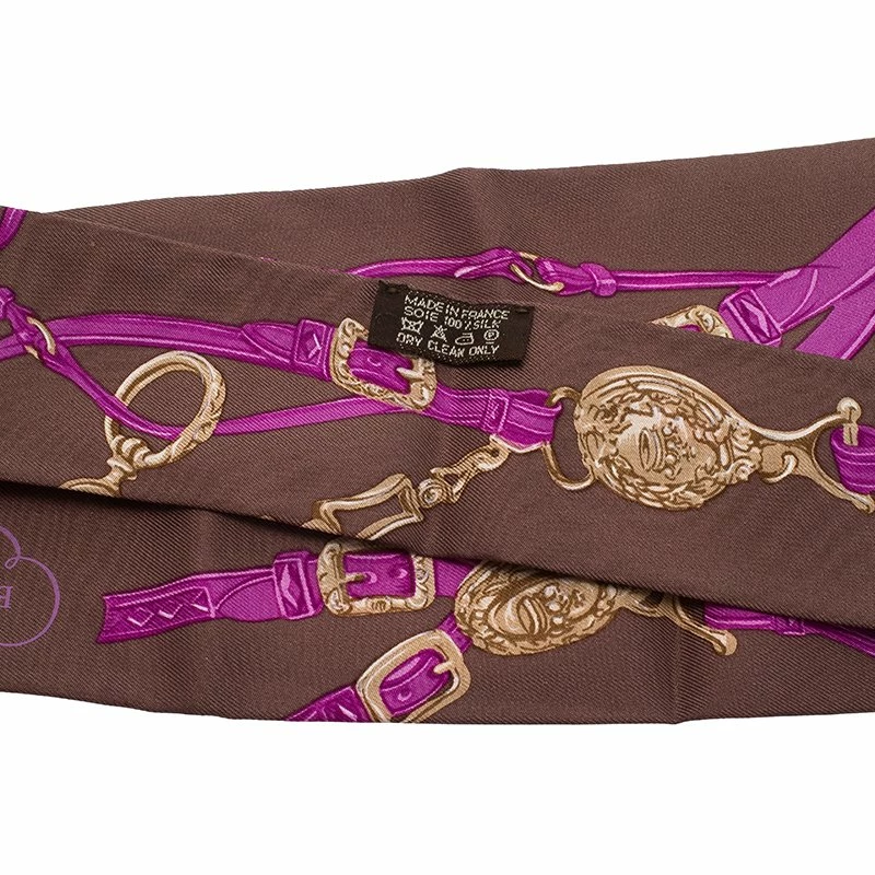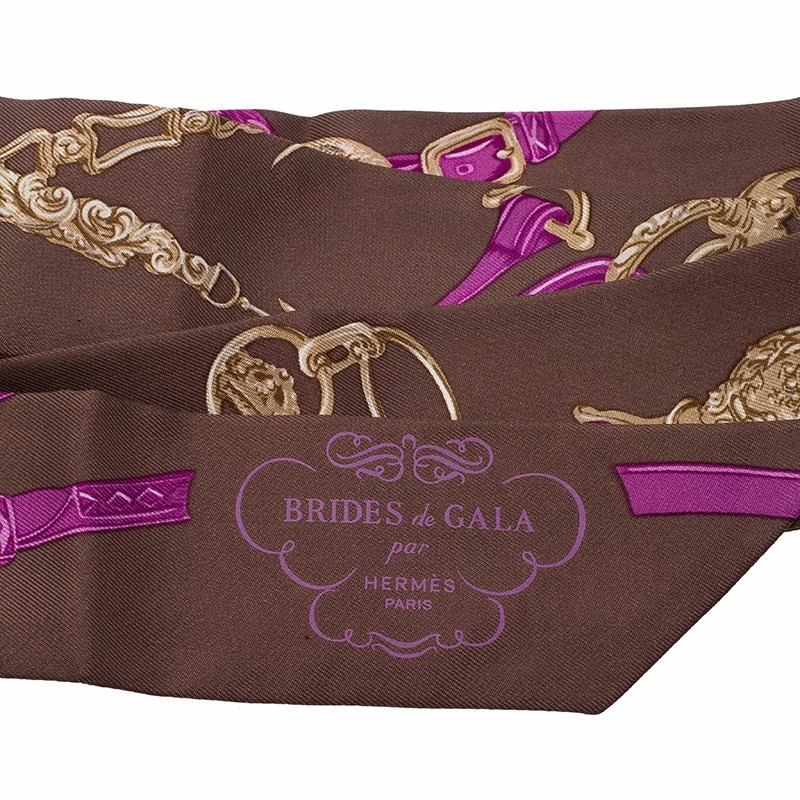 Regarded as one of Hermes all-time best selling designs, the ‘Brides De Gala’ was originally designed by Hugo Grygkar in the year 1957. Crafted in a versatile brown silk twill, this scarf features a unique purple print. Neatly knot it around your neck or wear it as a headband, there are infinite ways to style this chic scarf.