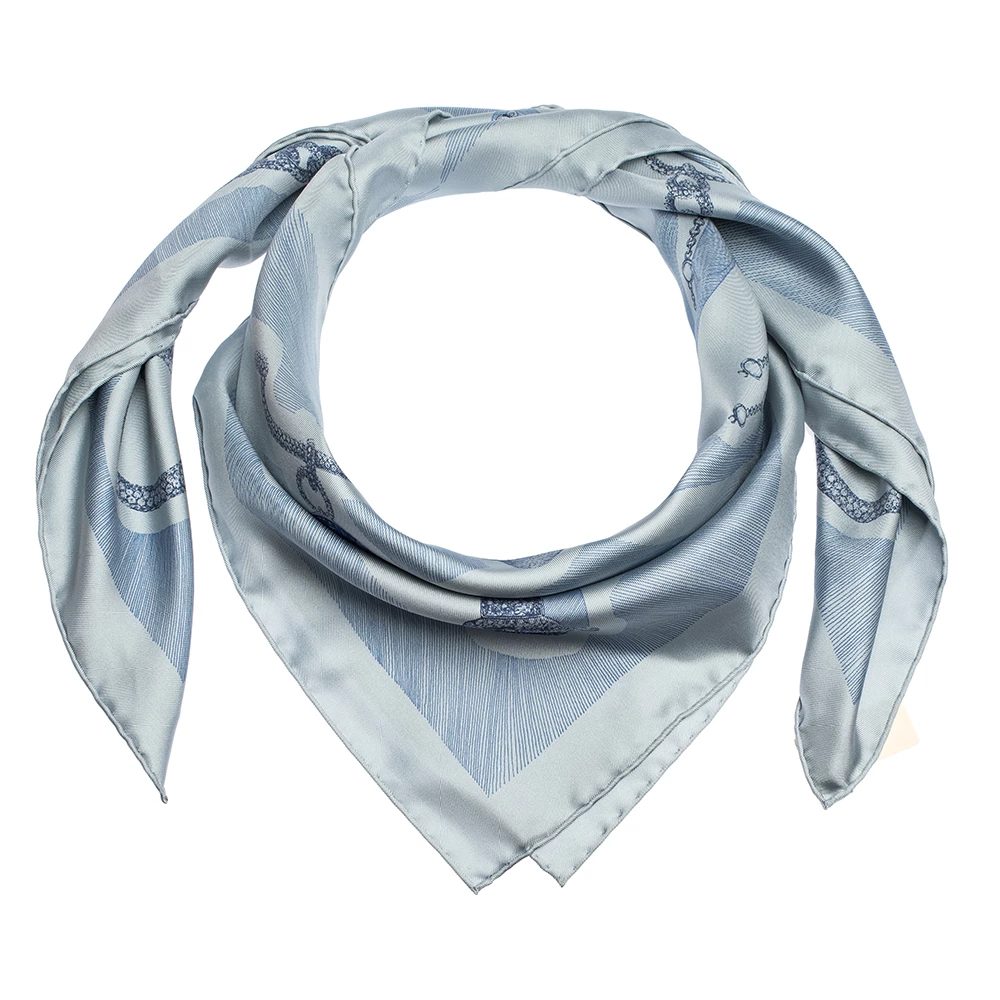 Each Hermes scarf is designed by artists who revel in their artforms, thus making these iconic creations no less than treasures. This scarf, made from silk, has unique prints all over and hand-rolled edges. It is grand and it has a delicate and soft feel.