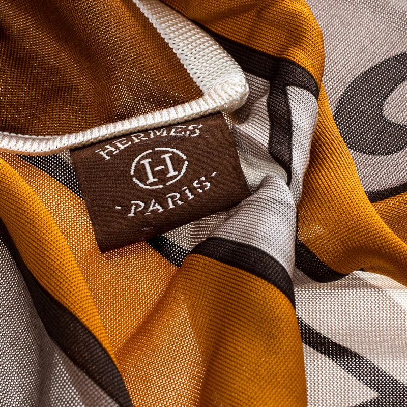 Featuring an intricate design of a Quadrige, this lovely scarf from Hermes carrying brown and orange hues is a sophisticated piece which will add a similar appeal to your ensemble. It is cut from silk with neatly rolled edges.