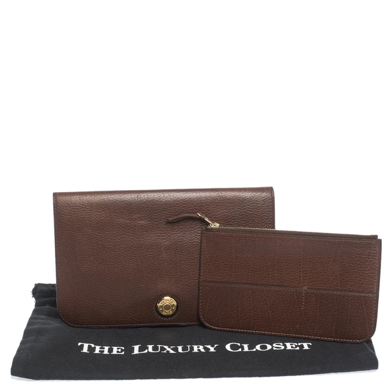 Crafted to perfection, this Hermes wallet is both beautiful and functional. Shaped well, the piece has a Clou de Selle closure that opens to show leather compartments. It is sized to hold your cards with ease and also fit into your handbags.